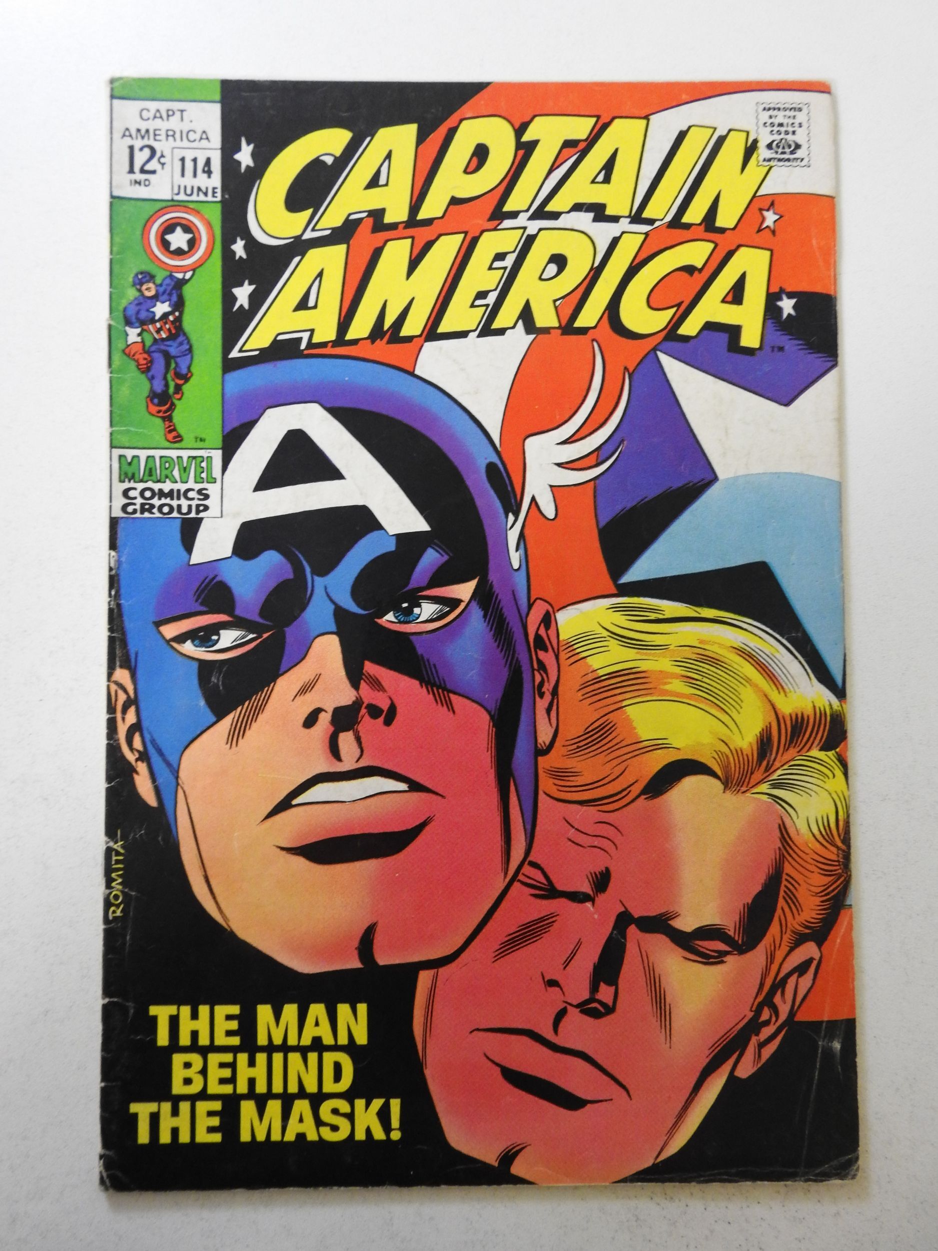 Captain America #114 (1969) VG Condition centerfold detached bottom staple