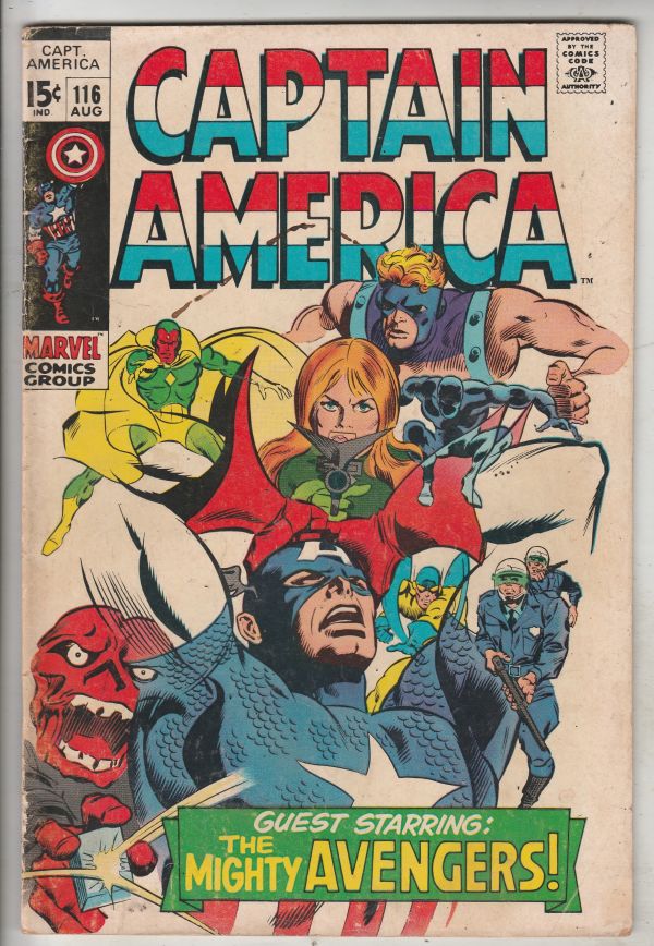 Captain America #116 - Guest Starring the Mighty Avengers! APPEARANCE - The Red Skull APPEARANCE - The Cosmic Cube This book has nice eye-appeal and deep rich color on this all-time-classic Captain America and Red ... Read More