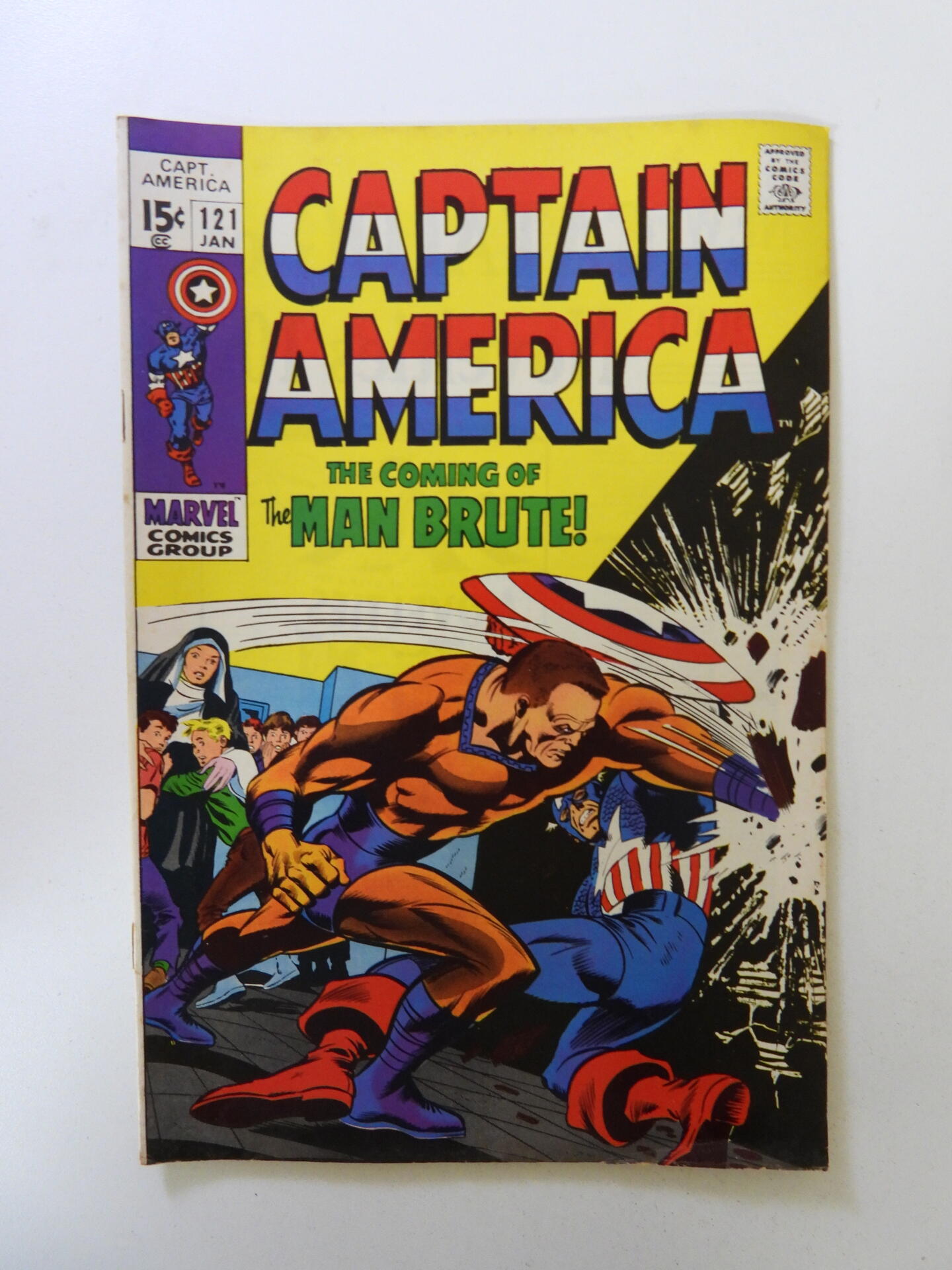 Captain America #121 VG+ condition "bottom staple detached from cover"