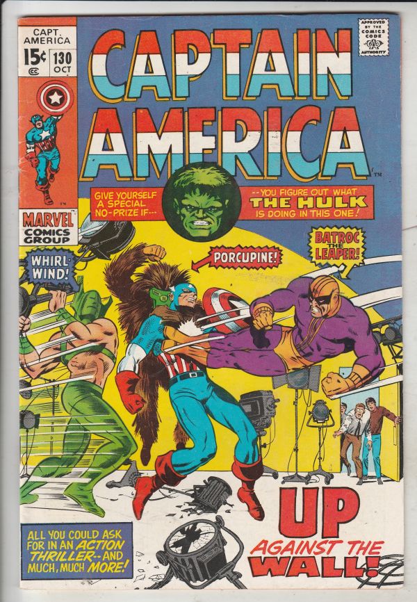 Captain America #130 - Up Against the Wall! APPEARANCE - Batroc the Leaper and Whirl-Wind APPEARANCE - The Incredible Hulk This book is part of the one-owner high-grade Wythville collection from Southern Virginia! ... Read More