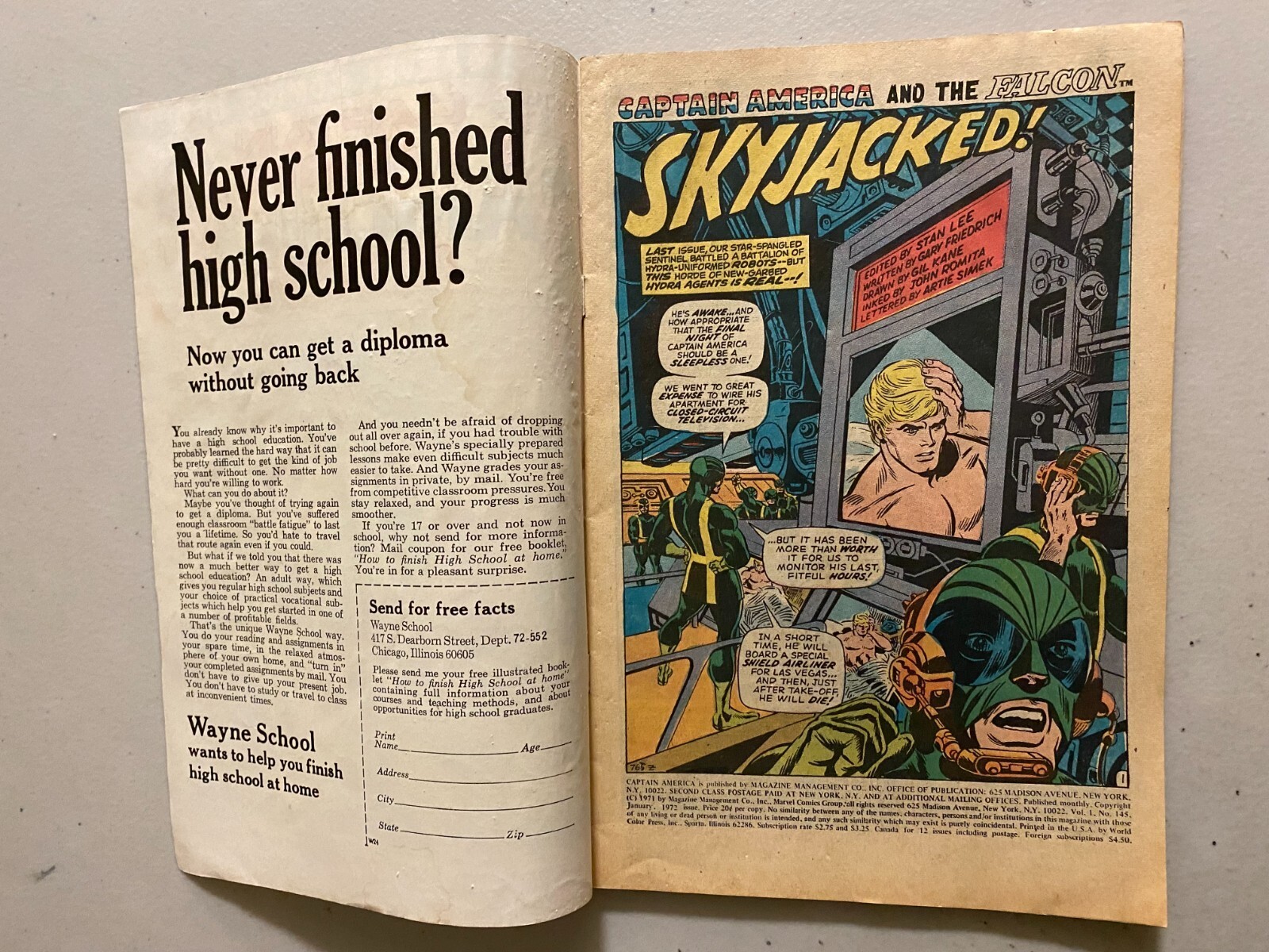 Captain America #145 Femme Force appearance (1972). 3.0 GD/VG, water stains.Please be sure to check our other exciting listings. Lot buyers: quantity of books (as described in item title and shown in photos). Unless an item description says SET or RUN it does not contain all consecutive books. Some items say VARIANTS so some variant covers are included which are duplicate issues in the storyline. With over 40 years of experience we expertly and professionally pack and ship your order maximizing item protection. Shipping is $5.99 for singles. We can ship up to four singles with combined shipping. For lots each 50 books is $14.99 per box. Shipments may also be expedited for an extra charge if you contact us first. Otherwise all orders ship within 2 business days, usually next business day. Satisfaction Guaranteed:If you do not feel you have received good value for your money, we offer free returns.