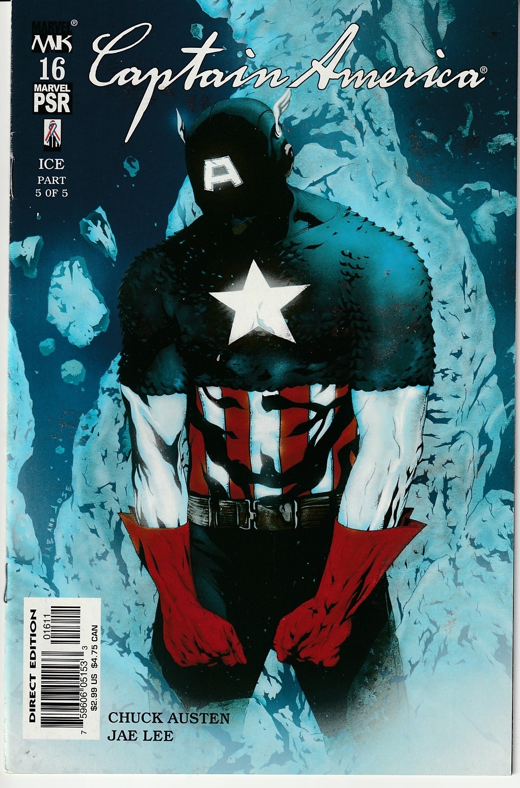 Ice part 4 delves into the question: was cap intentionally put into suspended animation by his own government ? Uncanny x-men/exiles/us war machine writer, chuck austen, and inhumans artist jae lee provide story and pictures