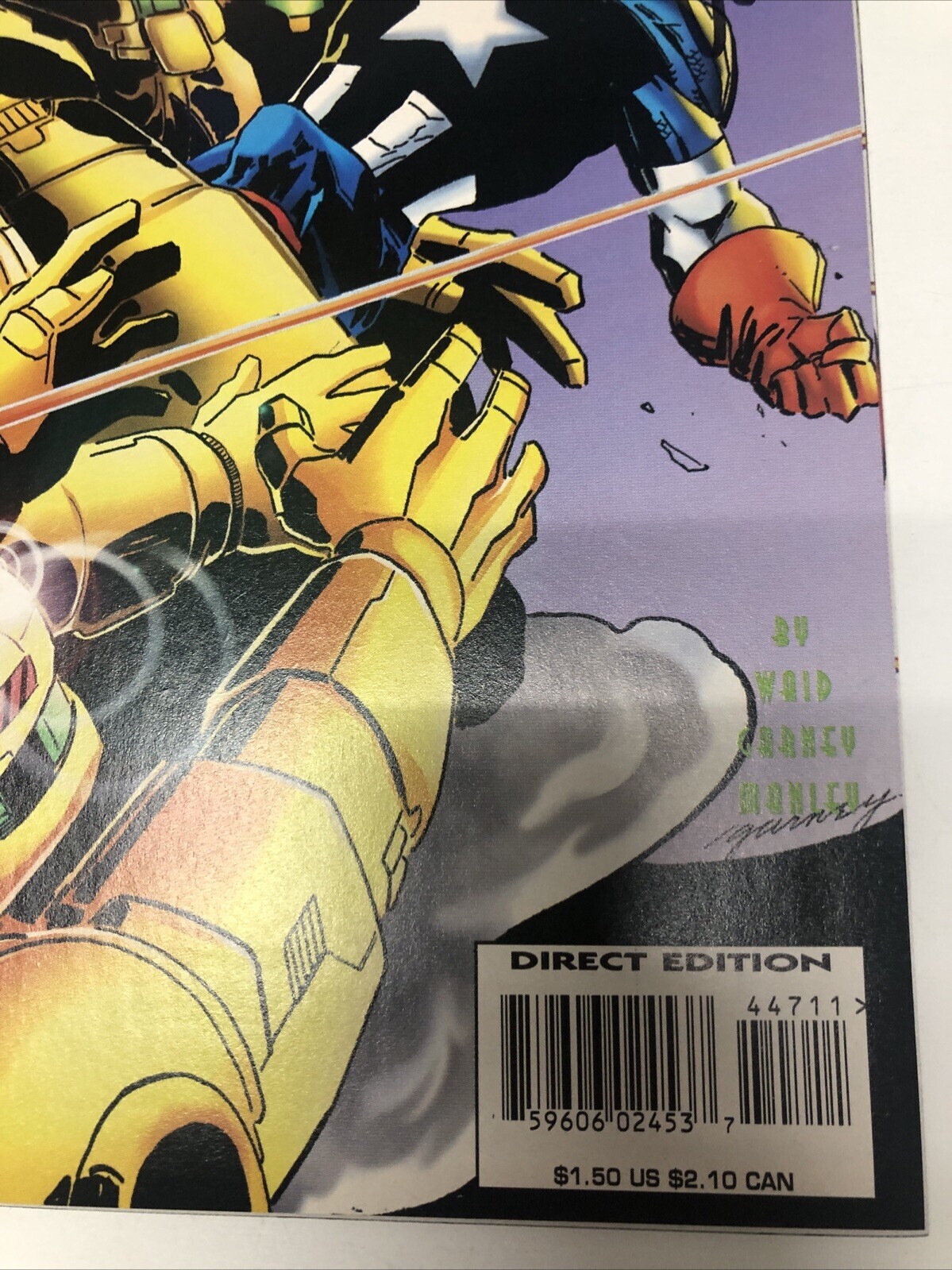 Grade: 9.0 Very Fine/Near MintDive into the adventure with "Captain America (1996) #447 Variant," a must-have for fans and collectors alike. Featuring the compelling storytelling of Mark Waid, this comic book captures the essence of the iconic character, Captain America, as he navigates through the challenges of the Modern Age of comics. The Variant cover adds a unique touch to this collectible.Not only is this piece a treasured addition to any Marvel collection, but it is also personally signed by Mark Waid, amplifying its value and uniqueness. As part of the celebrated Avengers series, it embodies the rich tradition of US Comics and is a testament to the enduring appeal of the genre. Enjoy a piece of superhero history in English, proudly manufactured in the United States.