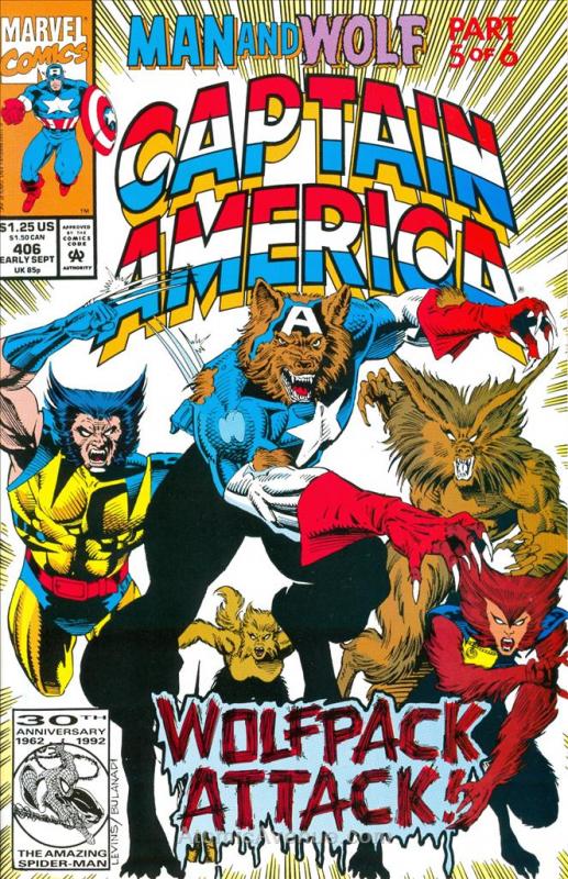 Captain America (1st Series) #406 VF ; Marvel | Capwolf Man and Wolf 5 Wolverine