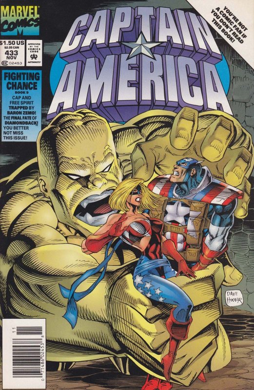 Item: Captain America (1st Series) #433 (Newsstand) | Publisher: Marvel | Cover Date: November 1994 | Writer: Mark Gruenwald | Artist: Dave Hoover | Cover Artist: Dave Hoover | Appearances: Baron Helmut Zemo, Captain America, Diamondback, Free Spirit, Kinder, Superia, Heike Zemo, Baron Zemo | Storylines: Fighting Chance, Part 9; Diamonds ArenÆt Forever! | Notes: Versus Superia; Versus Baron Zemo | With Economy shipping, each additional comic ships for just 50 cents more to customers in the USA. This listing contains a stock photo and information from ComicBase™ and © Human Computing. The stock photo is for reference only. If you would like to see a photo of the actual item, please message us prior to purchasing.Seller Information