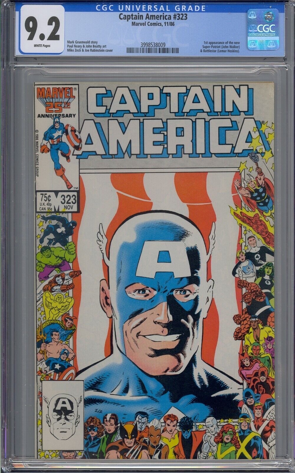 CAPTAIN AMERICA #323 CGC 9.2 1ST JOHN WALKER BATTLESTAR WHITE PAGES