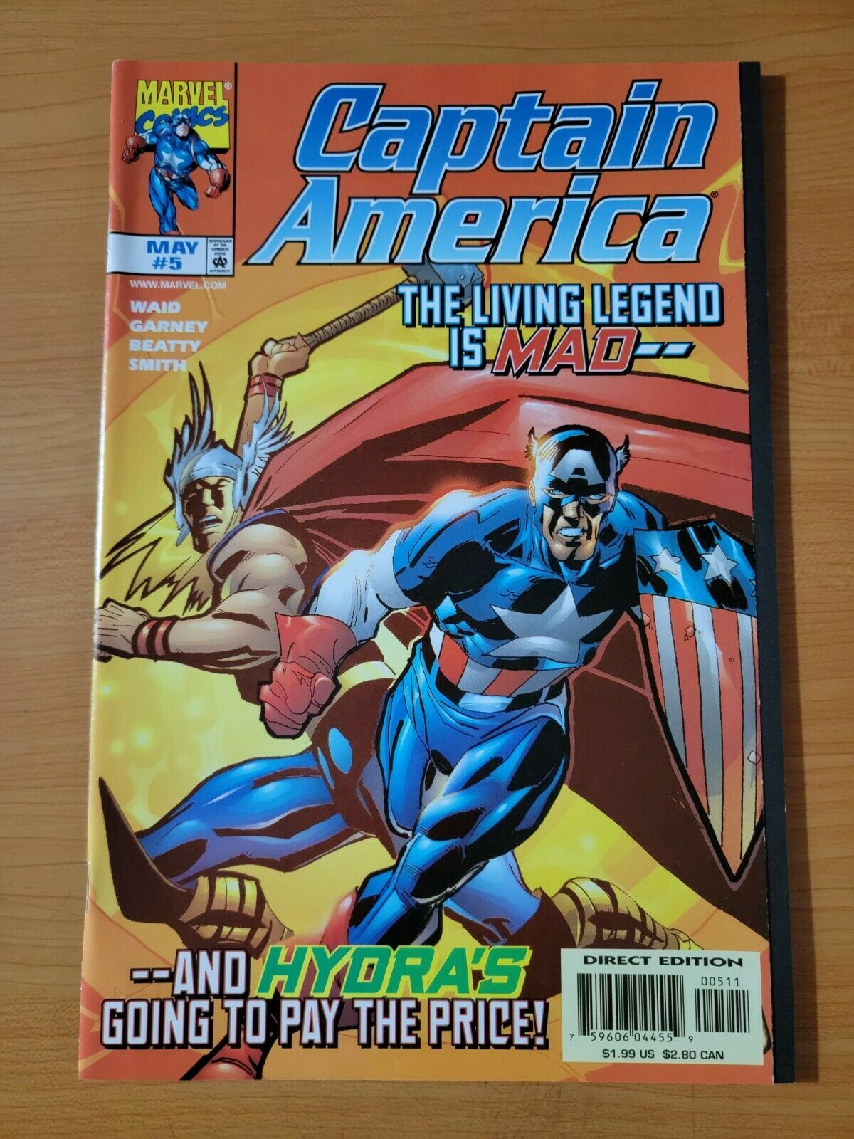 Item DescriptionCaptain America #5Publisher: Marvel ComicsPublished: 1998Item Grade/ConditionGrade: NEAR MINTFor more information about this grade and other grades, please see our grading standards.~ AS ALWAYS, WE TAKE HIGH DEFINITION PICTURES OF MOST OF OUR COMICS ~ For more detail use the ZOOM Function and check them out yourself! ~ Pictures are of the EXACT Comics in this listing! Shipping Info:United States: Orders of all sizes, big and small ship for a flat fee of - $3.50 ~WE LOVE FREE SHIPPING ~ This Standard May not apply to US Orders!~International: We use Calculated Shipping! ~ This insures that you get the LOWEST POSSIBLE COST! ~ Please give us one business day to calculate large orders! As a courtesy to our customers, we insure all orders over 50$ US ~ YOU DONT PAY EXTRA!Delivery TimeWe process and ship all orders within 1 business days. Once shipped, estimated U.S. transit time is 2-10 business days; international 14-21 business days.(Orders placed on Friday afternoon as well as weekends will be shipped the next business day as we do not ship on the weekends).PackingOmnomax Traders has mastered packing to ensure our orders of a "damage-free transport."Using the following methods, we have seen a nearly perfect 99% success rate for undamaged comics!Here is how our orders ship:Orders of 1-10 items:Bagged AND Boarded ( If Comic value is 10$ or More )Tightly secured between 2 stiff pieces of corrugated cardboardSealed on all 4 sides with strong packing tape (Items doesn't even wiggle).Protected in a large mailing envelope Orders of 10 and more:All items are bagged, and bottom item is in a board for extra protection of other items.All items are then placed together in a heavy bag. Tons of heavy packing paper &/Or Bubblewrap shields the items.Durable boxes hold the items*Now this method is nearly perfect! however we have seen damage happen to items ( only once or twice a year ) ~ this is often due to bad handling by the postal service. Always remember to contact us if this happens! we are committed to quality service!*Seller Information