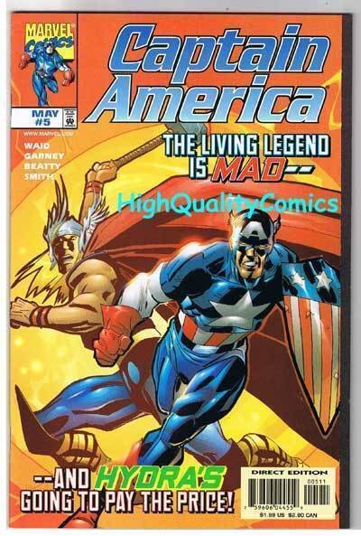 CAPTAIN AMERICA #5, VF+, Mark Waid, Thor, Vol 3, 1998, more CA in store CAPTAIN AMERICA #5...(Vol 3).... Name of Comic(s)/Title?: CAPTAIN AMERICA #5...(Vol 3)..... Publisher: Marvel Comics......... Art by/Featuring/Stories?: Featuring an issue of the CAPTAIN AMERICA comic...Artist(s): Ron Garney....Writer(s): Mark Waid....Front Cover: ?...Rated : PG13+...Story(s): "Power and Glory - Part 1 : Credibility Gap.."......."......... ... Grade of item? : This issue is in VERY FINE+ condition (brand new, unread).... Created when? : 1998 series.... Front Cover description : As new, with a corner ding.... Back Cover description : As new.... Page quality description : As new.... Tape or writing?: No... How are staples?: Staples are secure.... Flat & supple : Yes.... Don't get caught napping...Will come bagged & boarded... ...1st Printing!...... ...Lots more CAPTAIN AMERICA, THOR, & MOVIE/TV items in our store. Be sure to check out all of our current on-going auctions!! Lots of great product at affordable prices!!! Bookmark our listings with (control + D). Lots more coming in the next few weeks!!!! Check out the scan(s). If you like this? Our store name is HighQualityComics...aka HQComics... We have been doing mail-order since 1988. We guarantee Absolute Satisfaction on All Orders! Shipping in a box. Combine auctions to save on postage. INTERNATIONAL CUSTOMERS : Email us for international shipping rates & acceptable ways to pay. INTERNATIONAL CUSTOMERS : Email us for acceptable ways to pay and shipping options, before you place an order. Thanks!