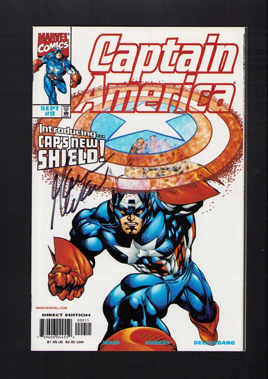 Grade: 8.5 Very Fine+ Captain America #9 - SIGNED BY MARK WAID! (8.5/9.0) 1998Size: 7" x 10"This item was uploaded by ___AG___.WE COMBINE SHIPPING!!! Either wait for us to send you an invoice after you commit to bu ... Read More