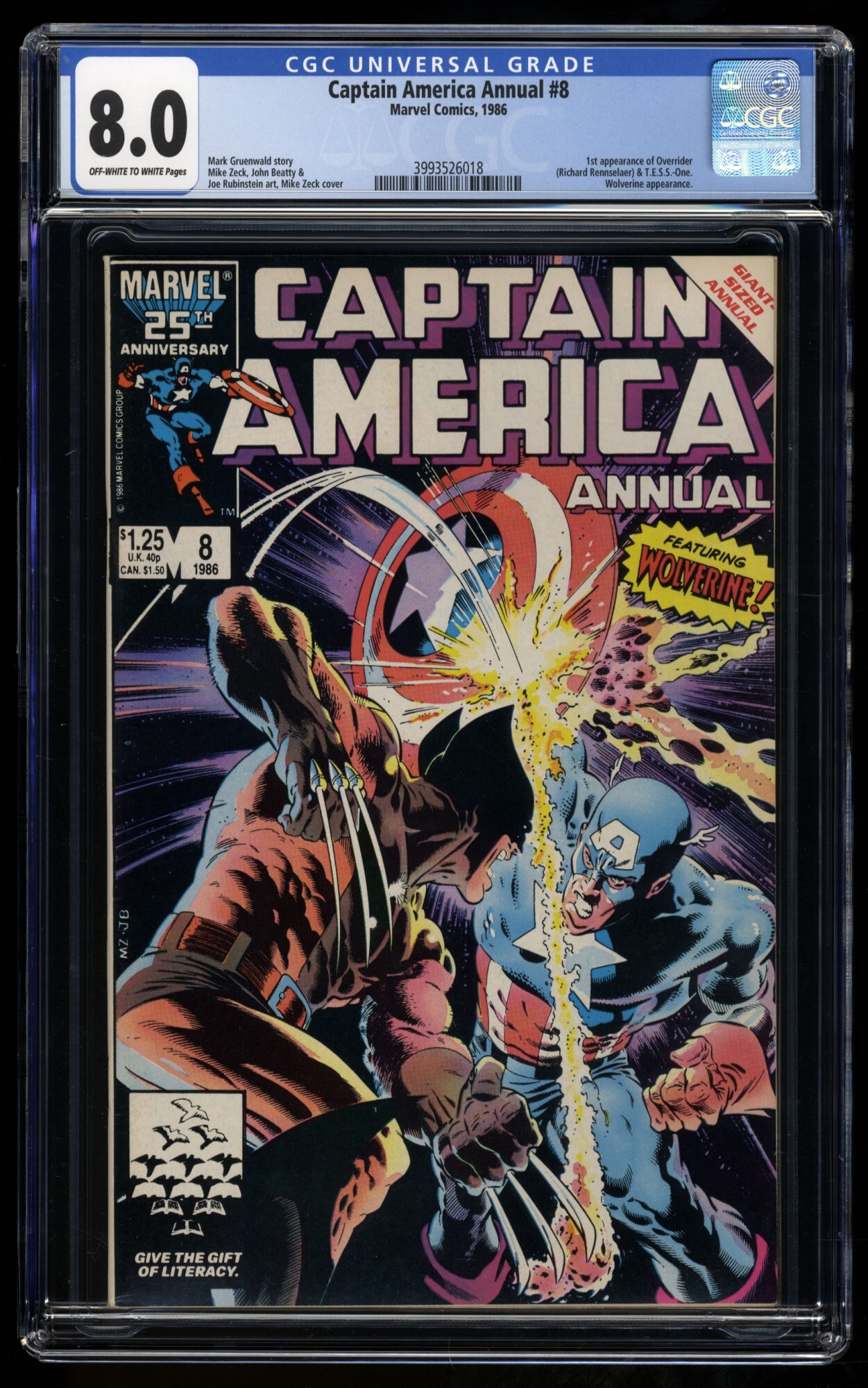 Captain America Annual #8 CGC VF 8.0 Off White to White Wolverine!