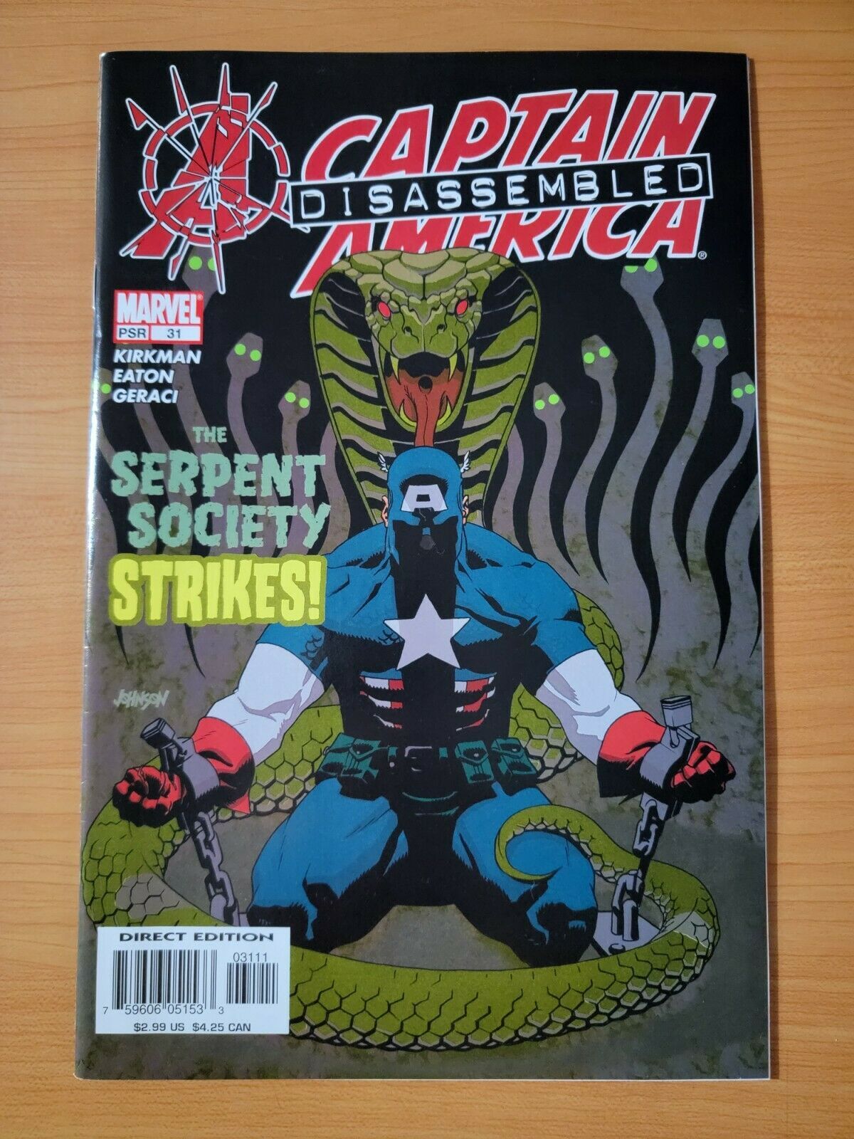 Item DescriptionCaptain America v4 #31Publisher: Marvel ComicsPublished: 2004Item Grade/ConditionGrade: NEAR MINTFor more information about this grade and other grades, please see our grading standards.~ AS ALWAYS, WE TAKE HIGH DEFINITION PICTURES OF MOST OF OUR COMICS ~ For more detail use the ZOOM Function and check them out yourself! ~ Pictures are of the EXACT Comics in this listing! ( Near Mint Comics will often have a Stock photo, as they are in near perfect condition a photo is not necessary! )Shipping Info:United States: Orders of all sizes, big and small ship for a flat fee of - $3.50 ~WE LOVE FREE SHIPPING ~ This Standard May not apply to US Orders!~International: We use Calculated Shipping! ~ This insures that you get the LOWEST POSSIBLE COST! ~ Please give us one business day to calculate large orders! As a courtesy to our customers, we insure all orders over 50$ US ~ YOU DONT PAY EXTRA!Delivery TimeWe process and ship all orders within 1 business days. Once shipped, estimated U.S. transit time is 2-10 business days; international 14-21 business days.(Orders placed on Friday afternoon as well as weekends will be shipped the next business day as we do not ship on the weekends).PackingOmnomax Traders has mastered packing to ensure our orders of a "damage-free transport."Using the following methods, we have seen a nearly perfect 99% success rate for undamaged comics!Here is how our orders ship:Orders of 1-10 items:Bagged AND Boarded ( If Comic value is 10$ or More )Tightly secured between 2 stiff pieces of corrugated cardboardSealed on all 4 sides with strong packing tape (Items doesn't even wiggle).Protected in a large mailing envelope Orders of 10 and more:All items are bagged, and bottom item is in a board for extra protection of other items.All items are then placed together in a heavy bag. Tons of heavy packing paper &/Or Bubblewrap shields the items.Durable boxes hold the items*Now this method is nearly perfect! however we have seen damage happen to items ( only once or twice a year ) ~ this is often due to bad handling by the postal service. Always remember to contact us if this happens! we are committed to quality service!*Offers History