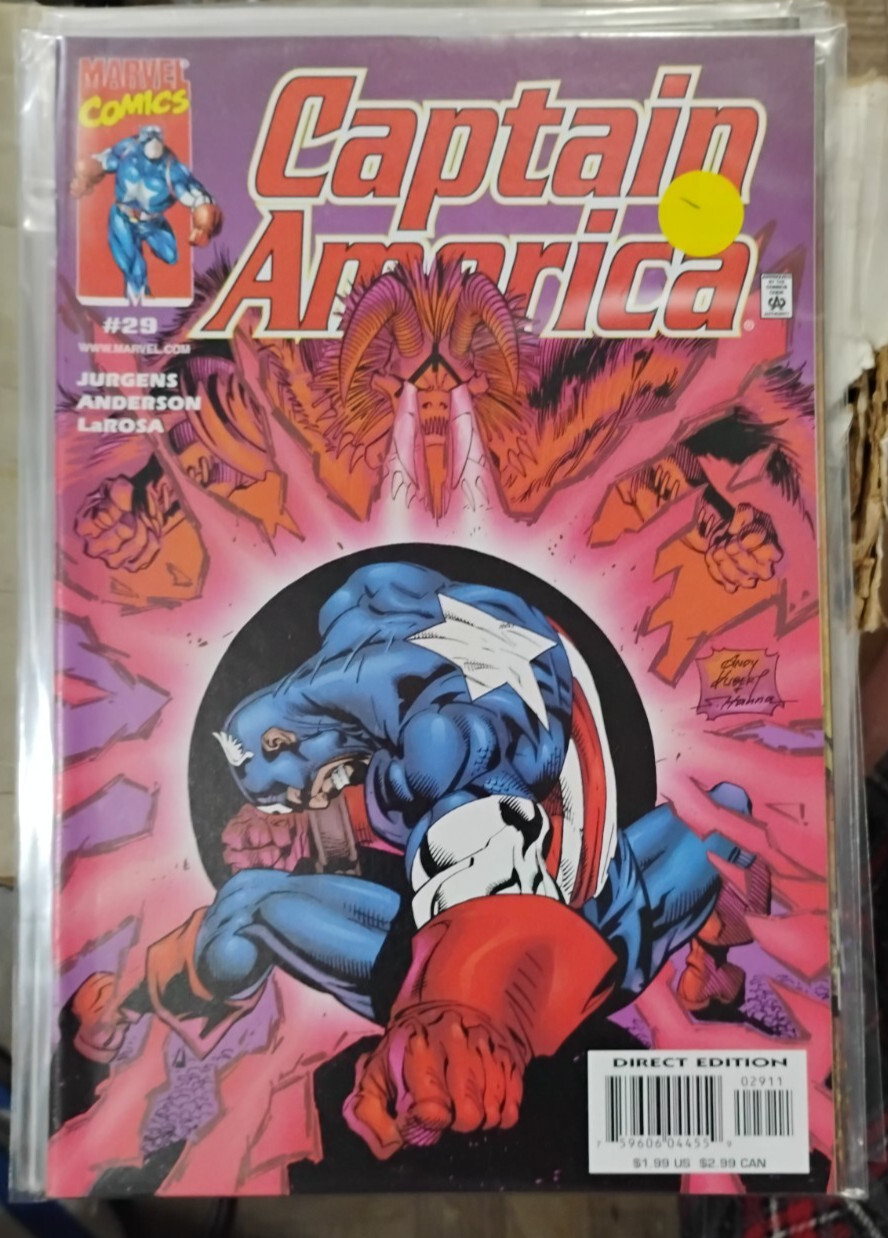 View more great items style="text-align:center" src="" border="0" align="center" style="text-decoration:none" href="" target="_blank" src="" border="0" height="27px" valign="middle" align="center" face="arial" size="2" href="" target="_blank" Store FOR AUCTION IS A COMIC BOOK FROM THE SERIES " CAPTAIN AMERICA " VOLUME 3 .(1997-2002) 1.99 COVER PRICE issues # 29"Grotesqueries" Part 2 of 4. Script by Dan Jurgens. Pencils by Andy Kubert. Inks by Dan Green (pp 1-13) and Joe Kubert (pp 14-21). Cover by Andy Kubert and Tim Townsend. Sharon Carter is deep in the Savage Land and deep in trouble! Several hours ago Agent 13 crash-landed into the prehistoric paradise, and a mysterious villain called Stox took her captive! SHIELD received word of her predicament and relayed the information to Steve Rogers. And now without hesitation Cap takes off for a new adventure in the land that time forgot! Meanwhile in Washington D.C., A.I.M. uncovers a dark secret from the early days of the super-soldier program. First appearance of Protocide. Cameo appearances by Connie Ferrari, Nick Fury, Thor, Jarvis, and Count Nefaria (in disguise). Special 8-page insert: Fast Lane Part 3 of 4. "On the Edge" Starring Spider-Man and the Human Torch. Script by Glenn Herdling. Pencils by Gregg Schigiel. Inks by Richard Case. (PUBLISHED BY MARVEL COMICS THE COMICS ARE BAGGED AND BOARDED THE COMICS WILL ALSO BE SHIPPED WITH EXTRA PROTECTION TO HELP PREVENT DAMAGE BY POST OFFICE I have sold and packaged comics for several years. I pack them how I would want to receive them. Thick cardboard with comic secured in the middle, moisture wrapped and sent in a bubble mailer or comic shipper. Larger purchases require boxes to maintain quality shippingSHIPPING PRICINGSHIPPING IS $ 6.00 FOR THIS ITEM AND ONLY $0.75 CENTS EACH ADDITIONAL ITEM, I WILL COMBINE ALL ITEMS Check out my other items! look at my feedback , I am a top rated 99.999 % + Hip seller........I have been selling on Hip for 10 years, a seller you can trust and paypal verified.I will work with you in any payment situation, Buy it now from a trusted seller If you have any problems, please use the contact seller link or email me directly Payment terms: PAYPAL is the only form of payment this site allows and payment is expected within 48 hours of auction ending. I will ship your merchandise within 1 DAY (once payment has cleared) or the next USPS BUSINESS DAY. SHIPPING TERMS:I ship normally 2-3 times a week, Normally on Mondays, Wednesdays and Fridays, sometimes Saturdays depending on volume. Please be patient for the U.S. Post Office to deliver your product in a timely manner. Normal shipping times for shipping is 1-10 days. Please visit usps.com to see the proper schedule of days for each delivery method. If an item is shipped back to us for ANY reason, we do not reimburse your shipping cost. THANKS AND ENJOY :) Please allow additional handling time due to HipS new payment processing, once received they send funds to my bank which adds 1-4 additional days beforeI receive the funds for use to purchase postage to ship.