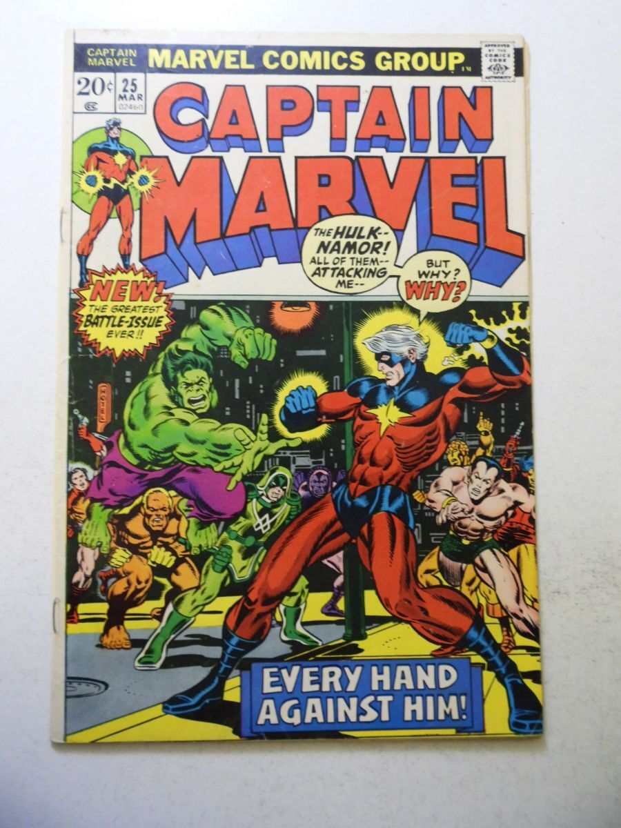 Captain Marvel #25 (1973) VG+ Condition small moisture stains bc
