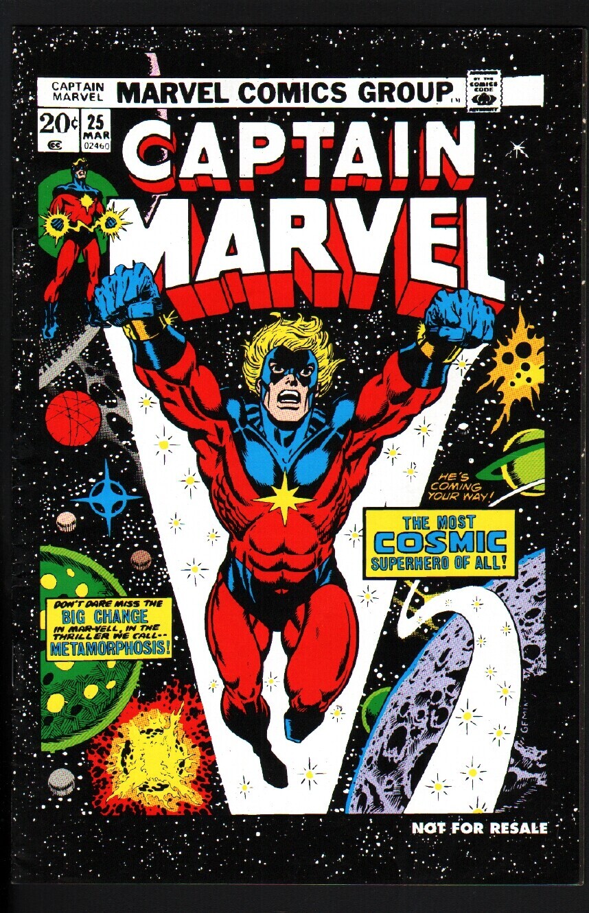 Grade: NM Captain marvel #25-starlin-thanos-rare 2nd print-htf-nm great marvel comic. Don't pass this one up. Hard to find 2nd print, distributed with a toy biz action figure. Grade: nm sku: do-16-204