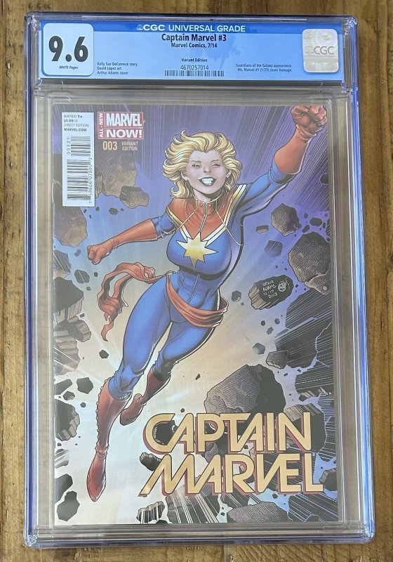 You are buying:Captain Marvel #3 Arthur Adams 1:25 Variant 2014 CGC 9.6 White Pages MarvelPlease see picsSeller Information