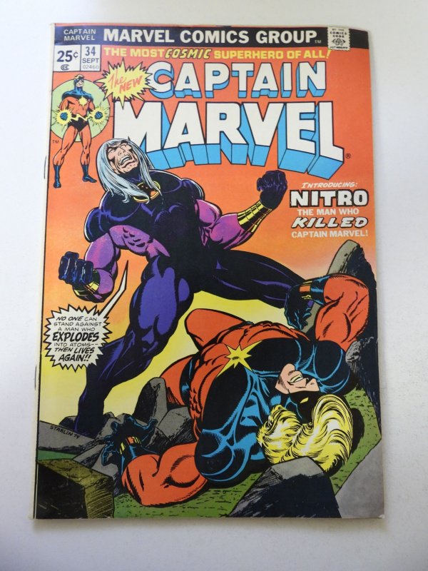 Captain Marvel #34 (1974) 1st App of Nitro! FN+ Condition MVS Intact