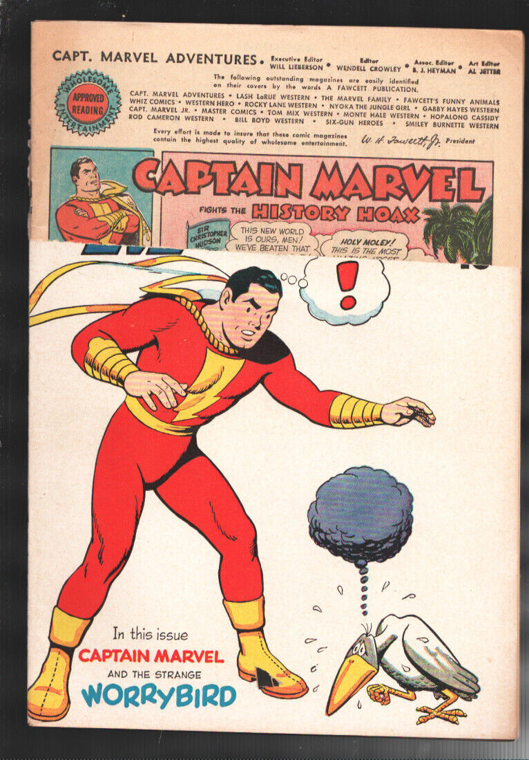 Captain Marvel Adventures Issue: 112 / Year: 1950 Condition: VG-Worry Bird issue -Nice looking unsold copy with title removed as a distributor return copy Publisher: FawcettSku: EB-33-101 Over 100,000 mail orders processed! Buy with confidence. Track Page Views WithAuctiva's Counter