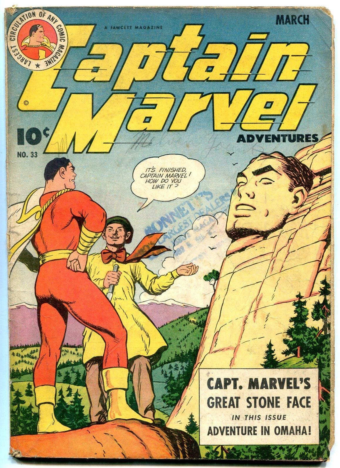 Grade: G/VG Captain marvel adventures #33 1944-fawcett comics-omaha g/vg captain marvel's great stone face - adventure in omaha! Mr mind is in this issue. Cover loose, single staple book. Grade: g/vg sku: do-07-062