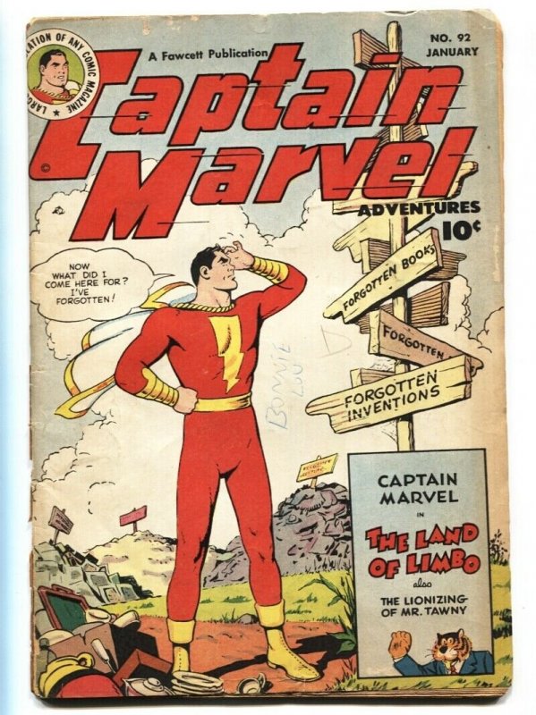 Condition: Condition is G . Please see item description for more information. Captain Marvel Adventures Issue: 92 / YEAR: 1949 Condition: G Mr Tawney, the tiger, appears in this fun filled issue. Captain Mar ... Read More
