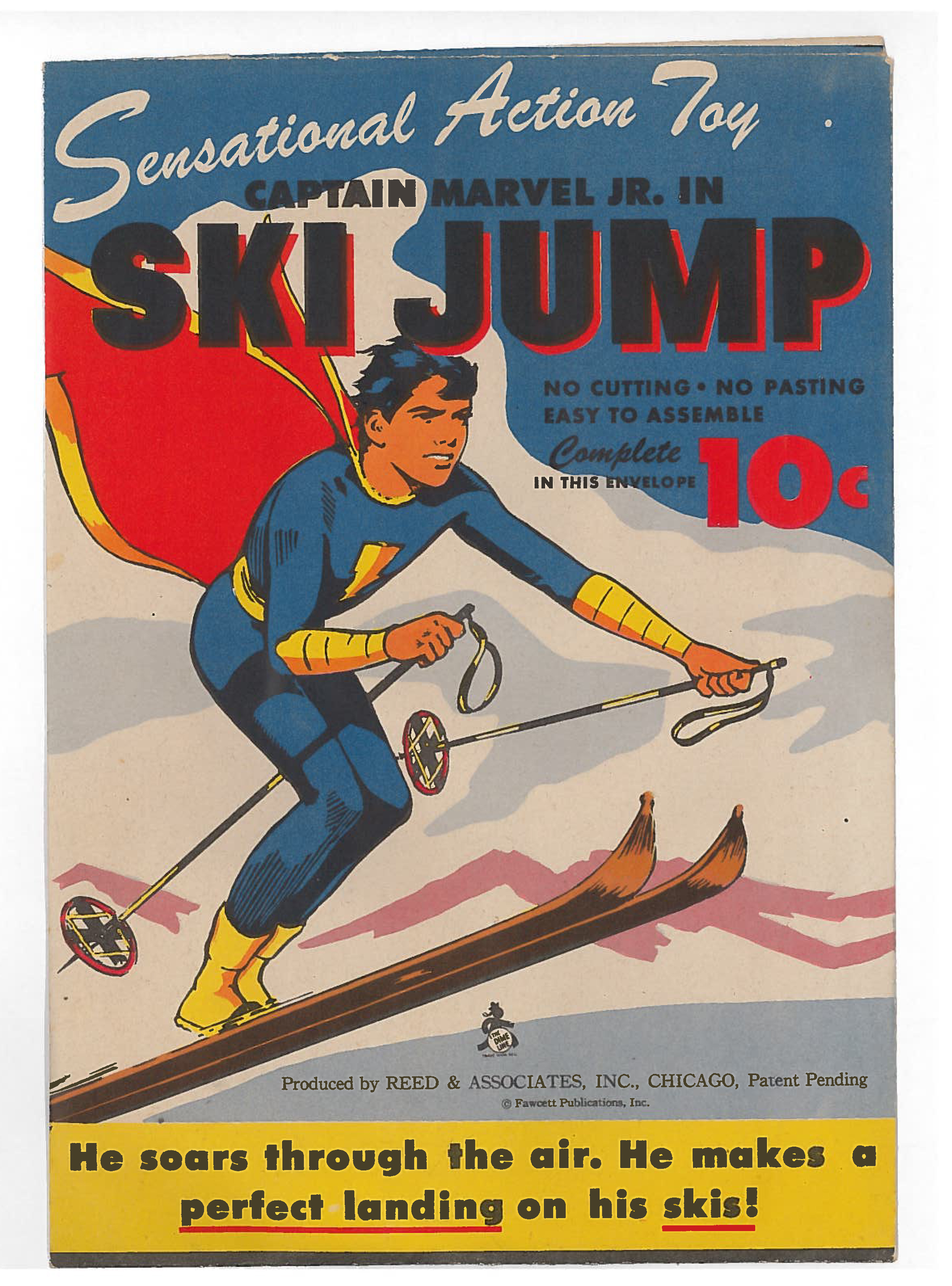 Captain Marvel Jr. in Ski Jump, paper toy 1944, complete, unused