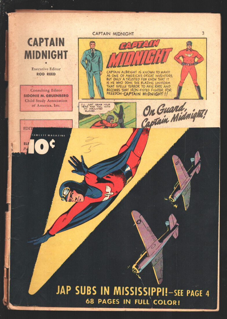 Grade: G- Captain Midnight #9 1943-Fawcett- vs Nazis & Japanese in this WWII era issue-G- -Captain Midnight vs Nazis & Japanese in this WWII era issue -3/4 cover-title removed from front cover as a distributor retu ... Read More