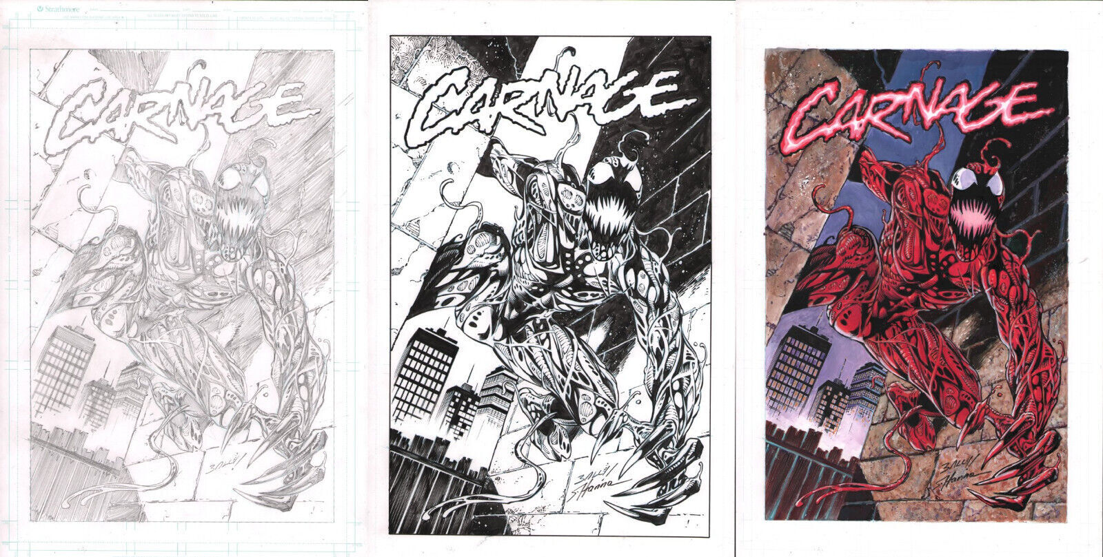 Carnage Pencil, Inks, & Colors Commission 3pc - Signed Art By Bagley & Hanna