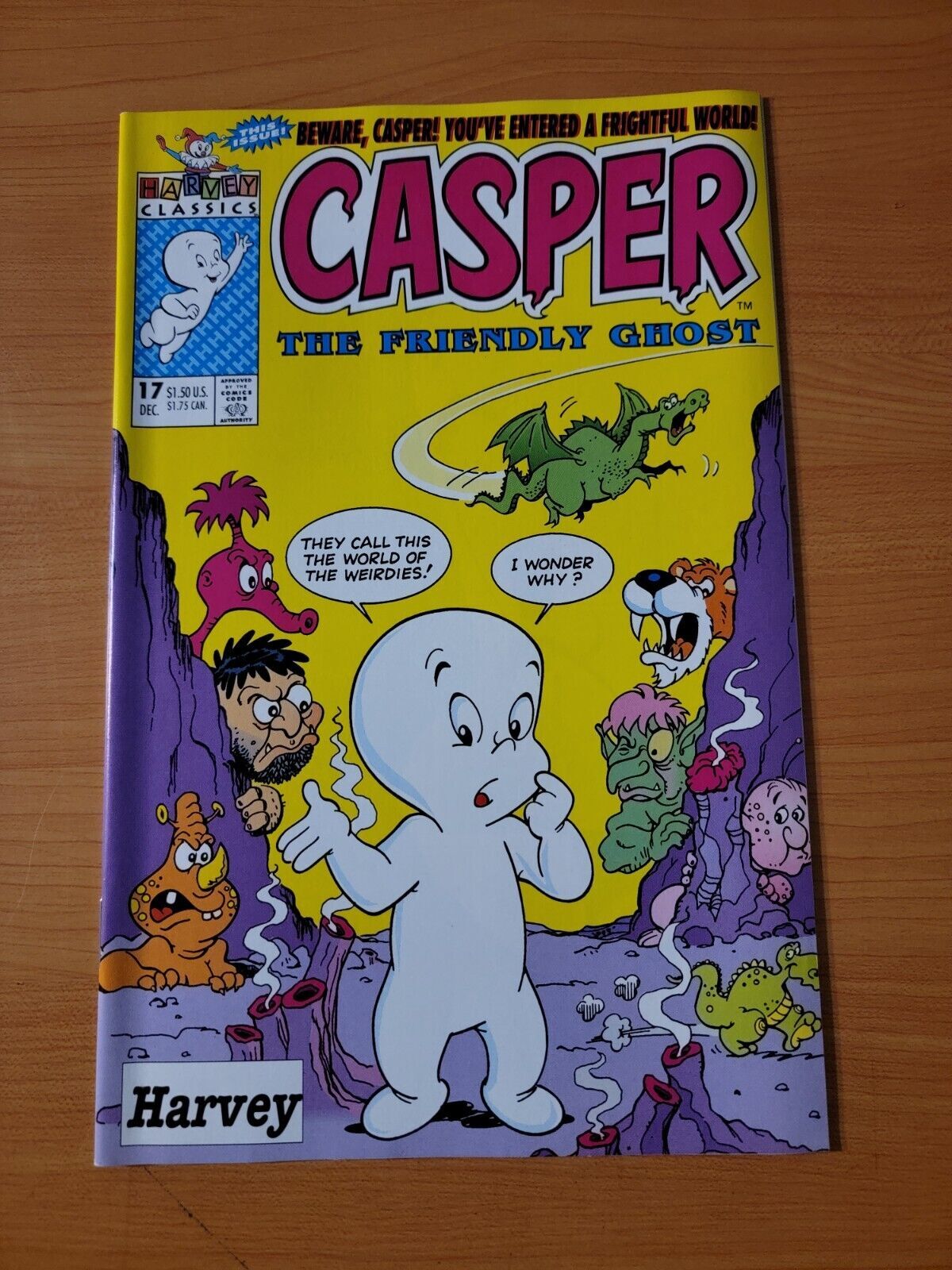 Item DescriptionCasper the Friendly Ghost #17Publisher: Harvey ComicsPublished: 1993Item Grade/ConditionGrade: NEAR MINTFor more information about this grade and other grades, please see our grading standards.~ WE TAKE HIGH DEFINITION PICTURES OF OUR COMICS ~ For more detail use the ZOOM Function and check them out yourself! ~Shipping Info:United States: Comic Book & Magazine Orders of all sizes, big and small ship for a flat Single Shipping ChargeInternational: We use Calculated Shipping! ~ This insures that you get the LOWEST POSSIBLE COST! ~ Please give us one business day to calculate large orders! The Calculator for Hip is pretty bad for international, contact us if you are looking to order multiple books so we can help you make it work on the back end! As a courtesy to our customers, we insure all orders over 50$ US ~ YOU DONT PAY EXTRA!Delivery TimeWe process and ship all orders within 1 business days. Once shipped, estimated U.S. transit time is 2-10 business days; international 14-21 business days.(Orders placed on Friday afternoon as well as weekends will be shipped the next business day as we do not ship on the weekends).PackingOmnomax Traders has mastered packing to ensure our orders of a "damage-free transport."Using the following methods, we have seen a nearly perfect 99% success rate for undamaged comics!Here is how our orders ship:All Orders :Bagged AND Boarded, ALWAYS NO EXCEPTIONS!Shipped in a Gemini Comic Mailer OR Tightly secured between 4x stiff pieces of corrugated cardboard (double Sandwiched)Sealed on all 4 sides with strong packing tape (Items doesn't even wiggle).:*Now this method is nearly perfect! however we have seen damage happen to items ( only once or twice a year ) ~ this is often due to bad handling by the postal service. Always remember to contact us if this happens! we are committed to quality service!*Offers History