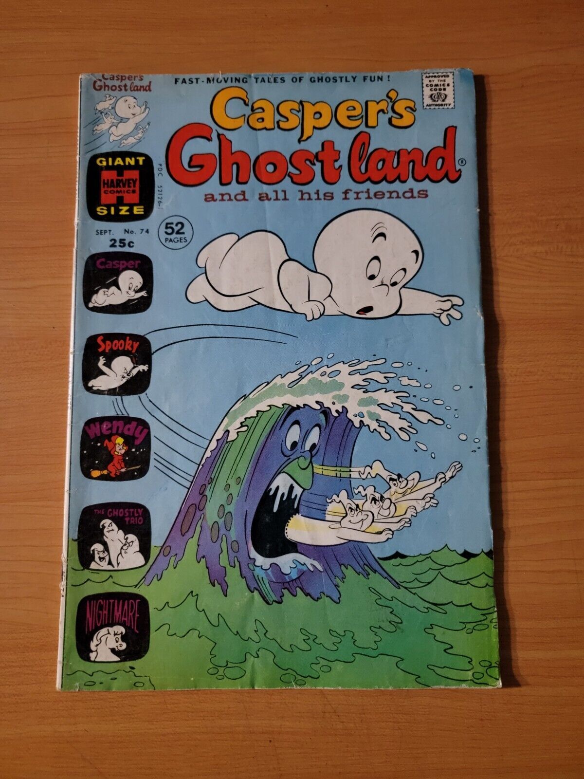 Item DescriptionCasper's Ghostland #74Publisher: Harvey ComicsPublished: 1973Item Grade/ConditionGrade: FINE - VERY FINEFor more information about this grade and other grades, please see our grading standards.~ WE TAKE HIGH DEFINITION PICTURES OF OUR COMICS ~ For more detail use the ZOOM Function and check them out yourself! ~Shipping Info:United States: Comic Book & Magazine Orders of all sizes, big and small ship for a flat Single Shipping ChargeInternational: We use Calculated Shipping! ~ This insures that you get the LOWEST POSSIBLE COST! ~ Please give us one business day to calculate large orders! The Calculator for Hip is pretty bad for international, contact us if you are looking to order multiple books so we can help you make it work on the back end! As a courtesy to our customers, we insure all orders over 50$ US ~ YOU DONT PAY EXTRA!Delivery TimeWe process and ship all orders within 1 business days. Once shipped, estimated U.S. transit time is 2-10 business days; international 14-21 business days.(Orders placed on Friday afternoon as well as weekends will be shipped the next business day as we do not ship on the weekends).PackingOmnomax Traders has mastered packing to ensure our orders of a "damage-free transport."Using the following methods, we have seen a nearly perfect 99% success rate for undamaged comics!Here is how our orders ship:All Orders :Bagged AND Boarded, ALWAYS NO EXCEPTIONS!Shipped in a Gemini Comic Mailer OR Tightly secured between 4x stiff pieces of corrugated cardboard (double Sandwiched)Sealed on all 4 sides with strong packing tape (Items doesn't even wiggle).:*Now this method is nearly perfect! however we have seen damage happen to items ( only once or twice a year ) ~ this is often due to bad handling by the postal service. Always remember to contact us if this happens! we are committed to quality service!*Offers History