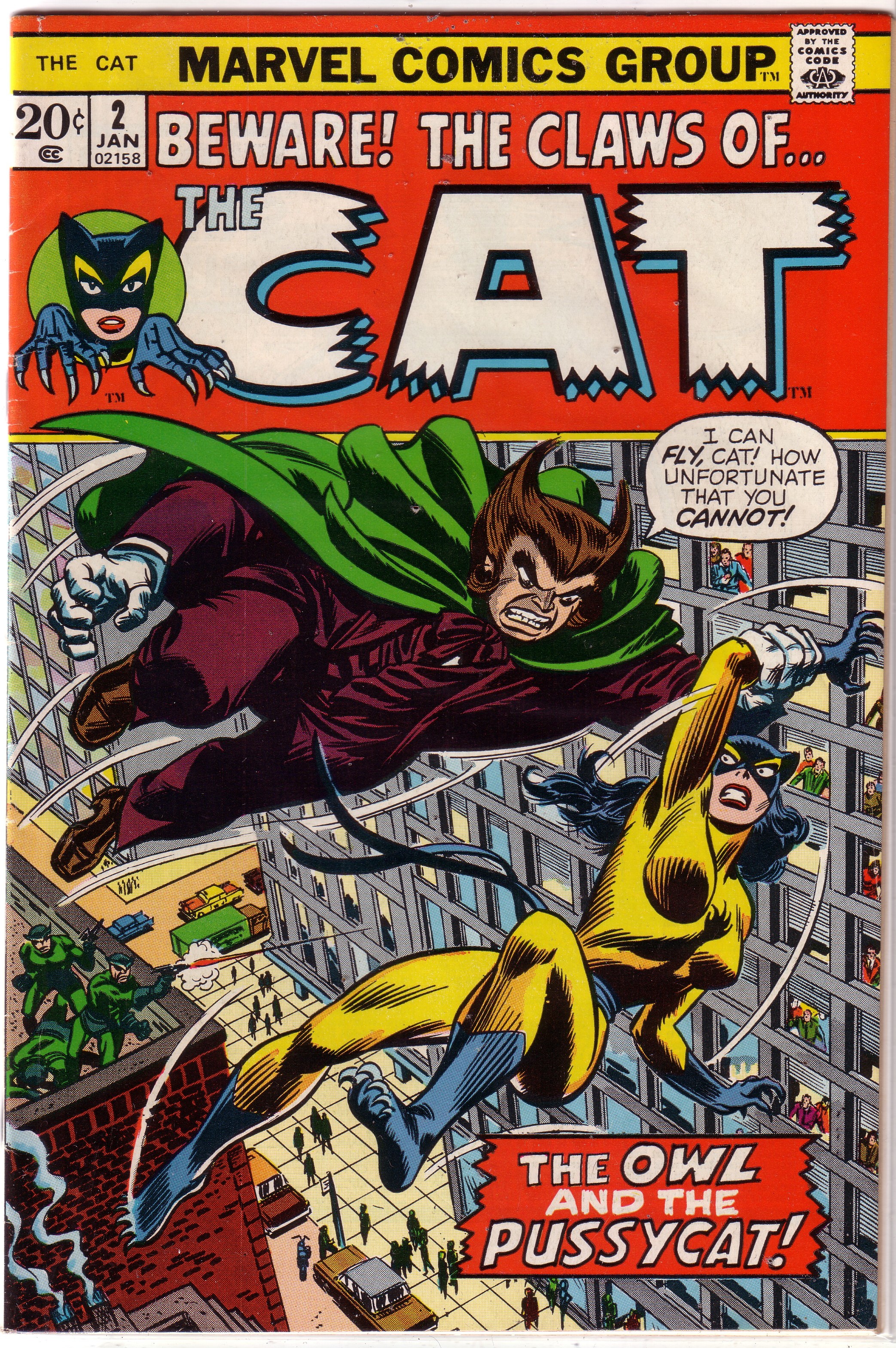 bronze age superhero comic book The Cat Vol 1 2 Beware! The Claws of The Cat #2 VG volume 1 Date: January, 1973 Publisher: Marvel Comics Rating: CCA Writer: Linda Fite Artist: Marie Severin & Jim Mooney Coloris ... Read More