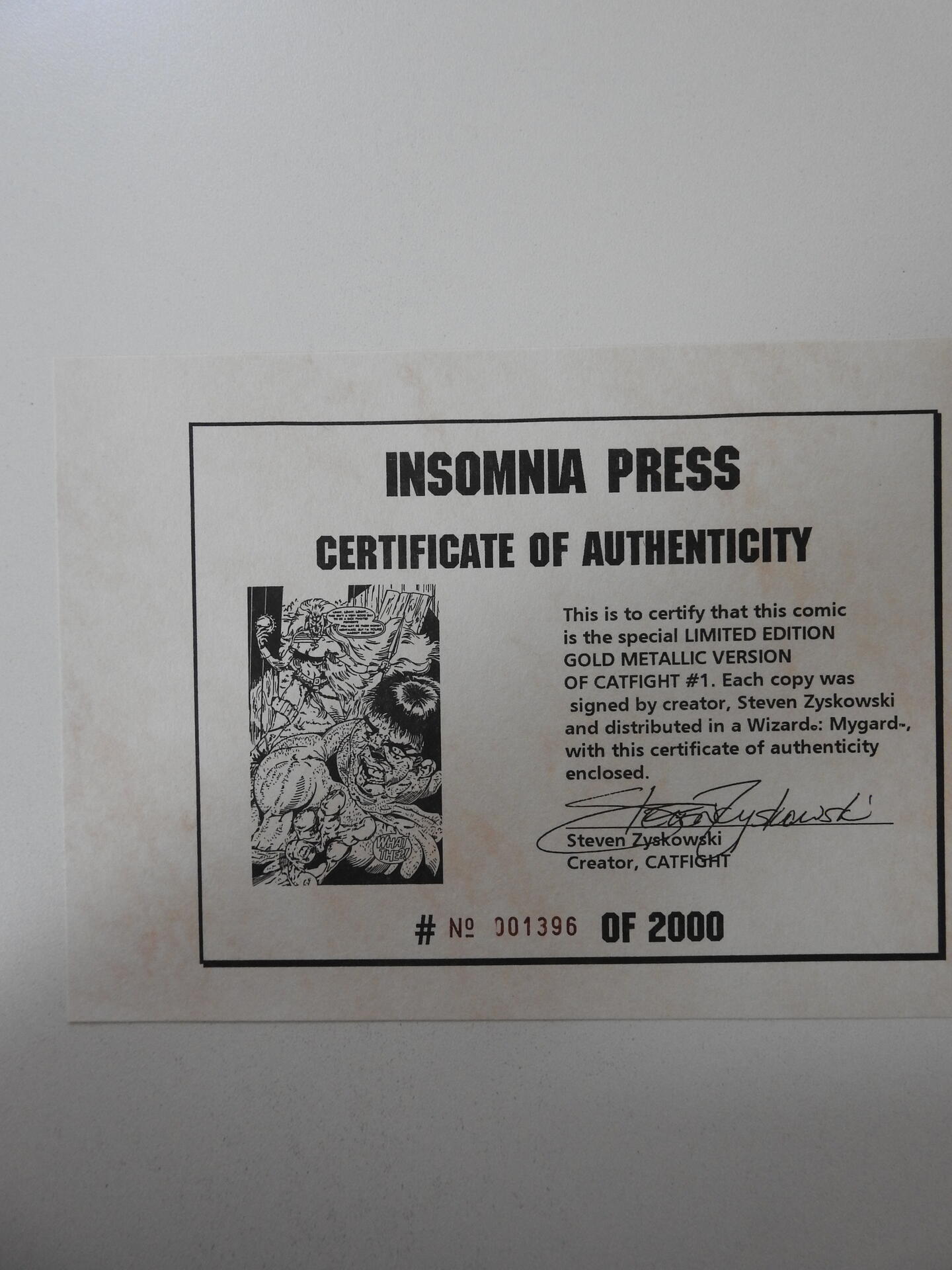 Catfight #1 Signed by Steven v. Zyskowski (1995) W/ Certificate of Authenticity! LDT #1396/2000