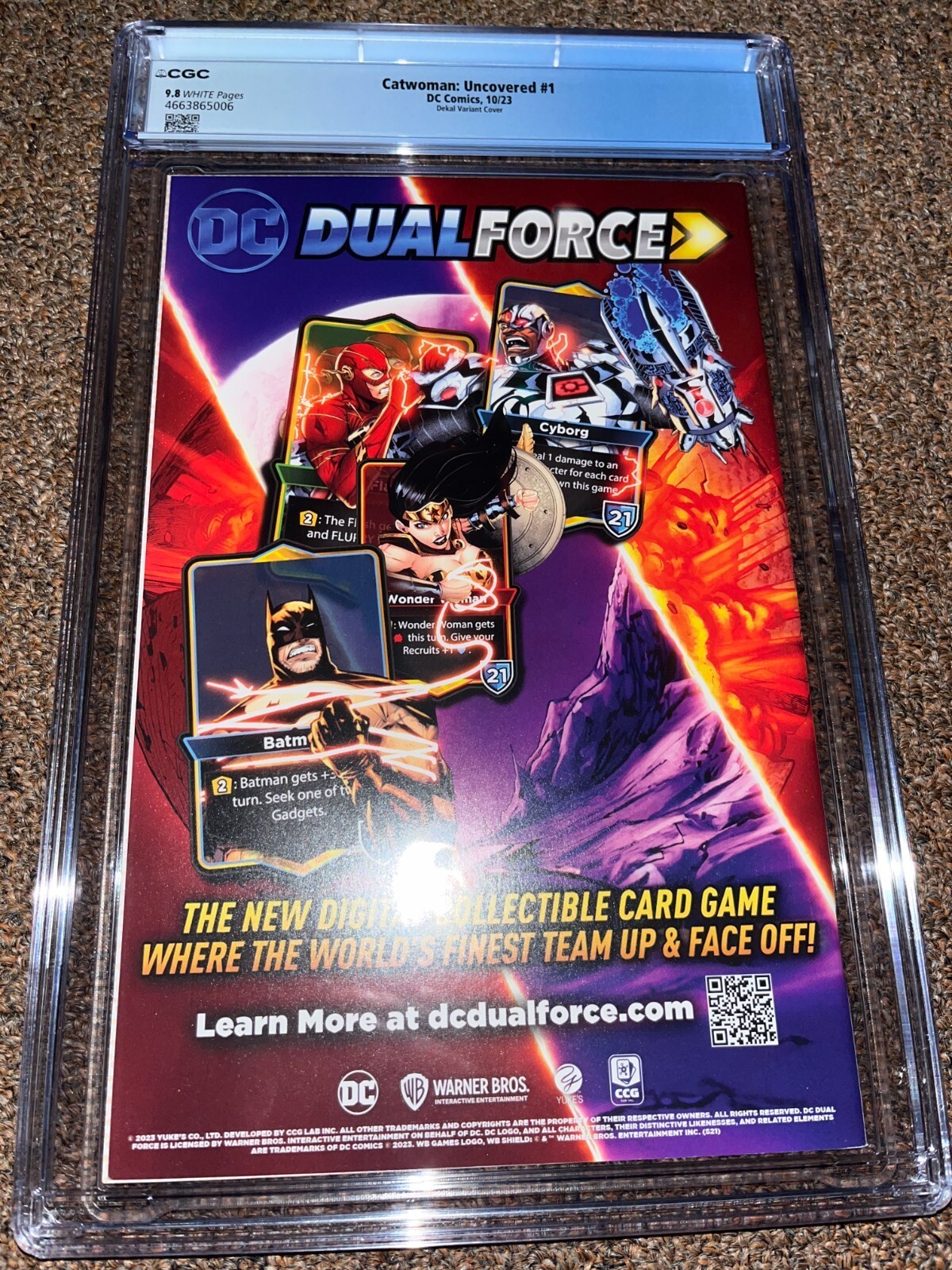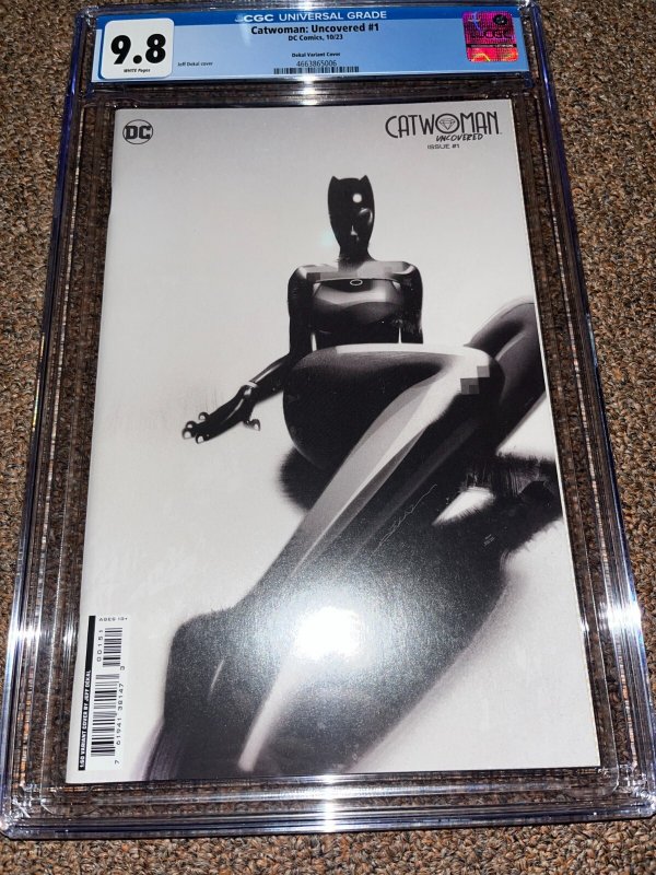 Grade: 9.8 Near Mint/MintUp for sale is a Catwoman Uncovered 1 (2023). This is the Dekal 1:50 variant cover. The book has been graded by CGC at 9.8. The case is in great condition with no issues.________________________________________________________________________________________________________________________________SELLER TERMS AND CONDITIONS:Please take a look at my other items as I do combine shipping on all orders.If you purchase multiple items, please wait for an updated shipping invoice before paying.Items are from a smoke free environment.Payment is due within 3 days. Please contact me with any questions.