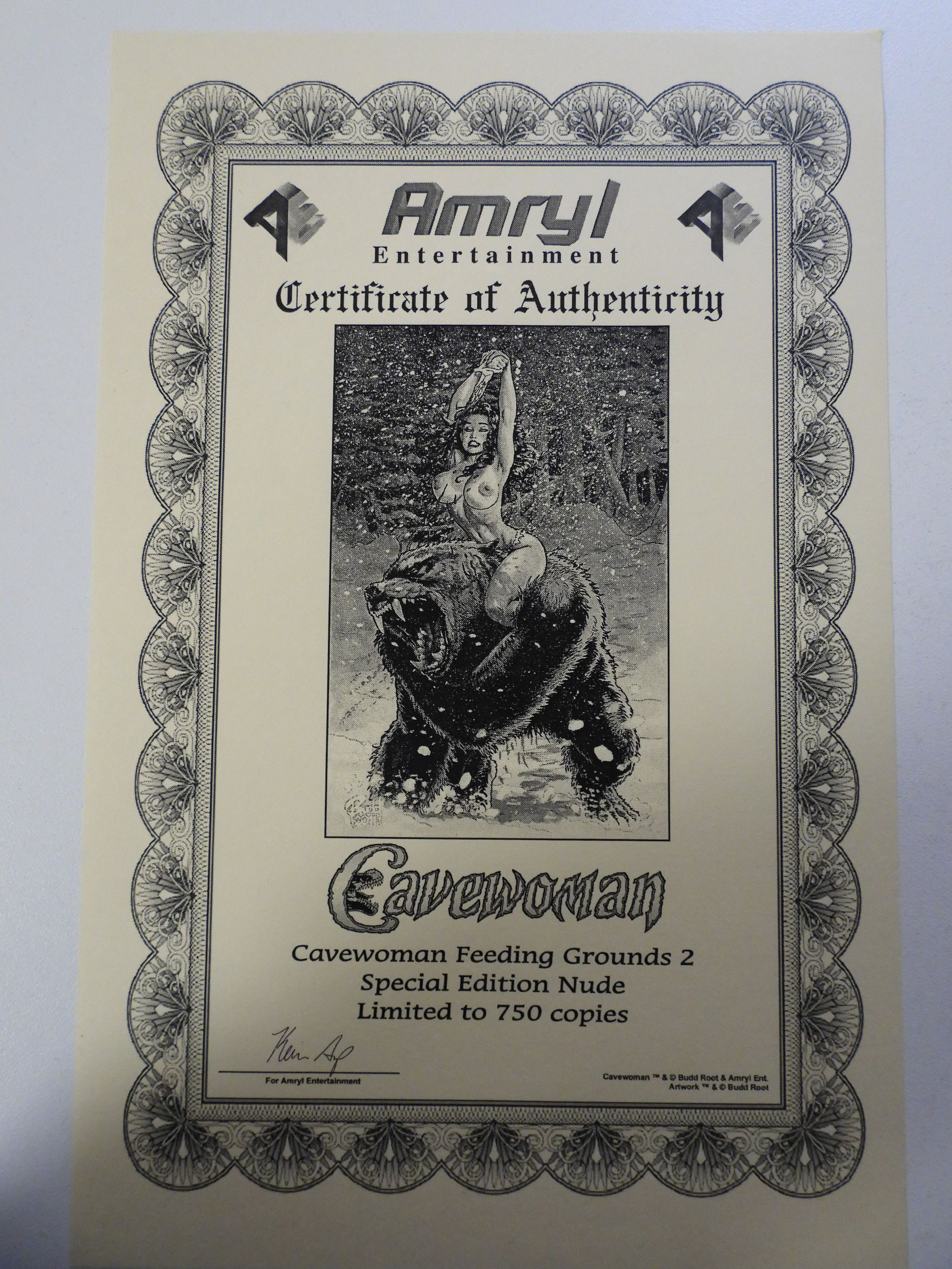 Cavewoman: Feeding Grounds #2 Budd Root Special Edition Nude w/coa NM Condition