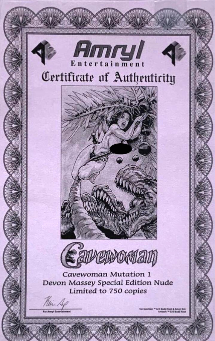 Cavewoman Mutation #1 Devon Massey Special Edition Naughty Virgin Cover W/COA.