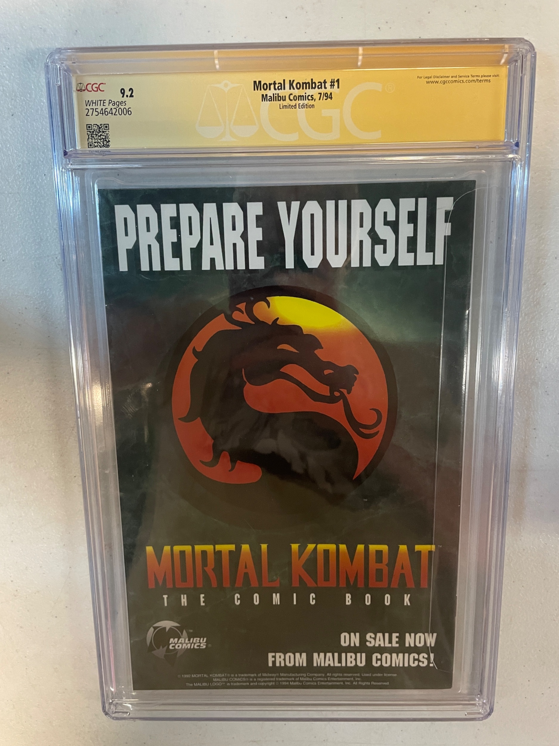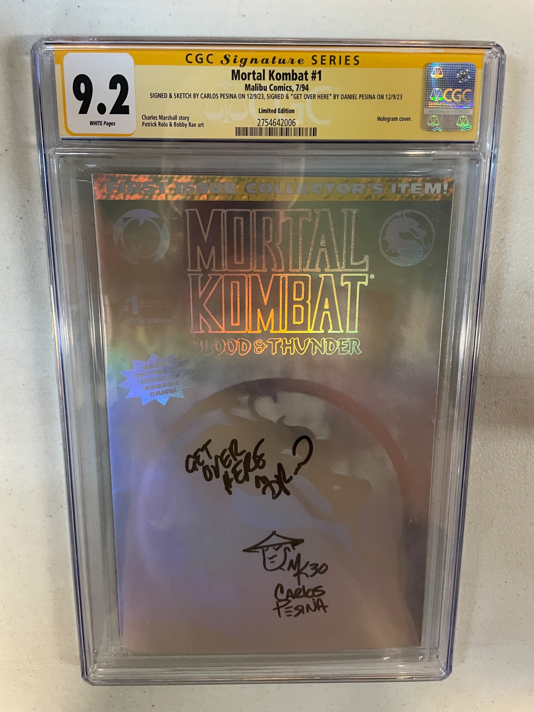 CGC 9.2 Mortal Kombat #1 1994 Foil Edition DOUBLE SIGNED Carlos & Daniel Pesina