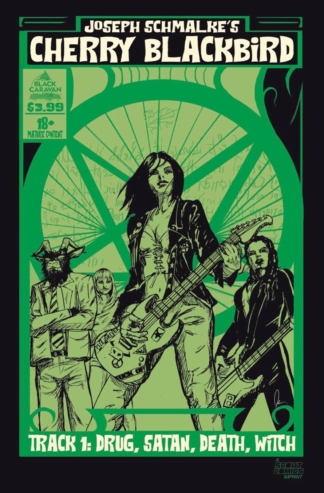 Grade: 9.2 Near Mint-Item Information: (W/A) Joseph SchmalkeSecond Printing ! BLACK CARAVAN IMPRINT: Rockstar Cherry Blackbird sold her soul for fame. Now at the age of 26, time is running short. The day she turns 27, she'll be dragged to Hell. But Cherry is not one to go quietly...the Devil tasks her with collecting seven demonic souls that have escaped the Abyss. If she can do this before her next birthday, she'll be released from her infernal pact and spared eternal damnation. Heaven help anyone who gets in her way. Gear up for a sleazy, filthy ride down a dark road with Cherry and her crew as they carve their way across America in this no-holds-barred epic Grindhouse/Horror story.JM 11-23*Please note we put a generic grade of 9.2 VF/NM on all of our listings of comics but most are in better condition with very few being worse.**We use the Stock Photo provided by the publisher, due to listing the items before release date. A few times the publisher will make small changes to the image before shipping them, including but not limited to adding trade dress, changing colors of the title, etc. We try and replace the image but do not always see the change. Please be aware.*Terms: We are happy to combine shipping on domestic shipments. If you purchase more than one item, and the following rate does not properly apply, please request a combined shipping invoice before making payment:We DO NOT ship media mail for comics, because those shipments are legally not supposed to contain advertising and are subject to inspection. Media mail shipments also take longer to arrive, so with our First Class or Priority Mail shipment you will get your books in a timely manner and you can trust our integrity in following legal guidelines. We also take special care to package items securely, unlike others who are more concerned with expediency (and skirting shipping rules).If you are and international bidder:We use Hip's international shipping program. Information about this program and to see if you country qualifies check here: