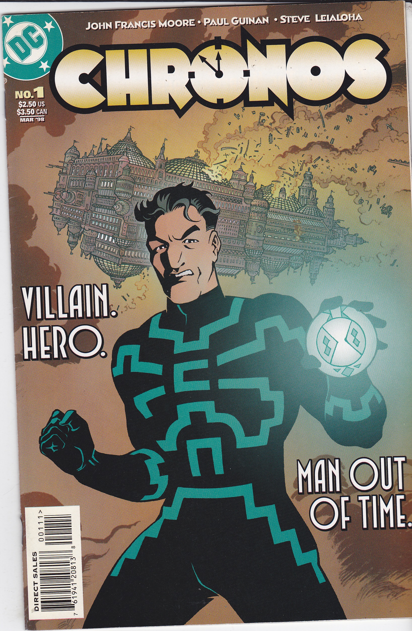 Chronos #1 by DC Comics copyright 1998. I have graded the comic book, using the Overstreet Grading Guide, at VERY FINE with the following defects: Light stress marks along the spine. The corners are starting to round. There is some yellowing of the pages.Seller Information