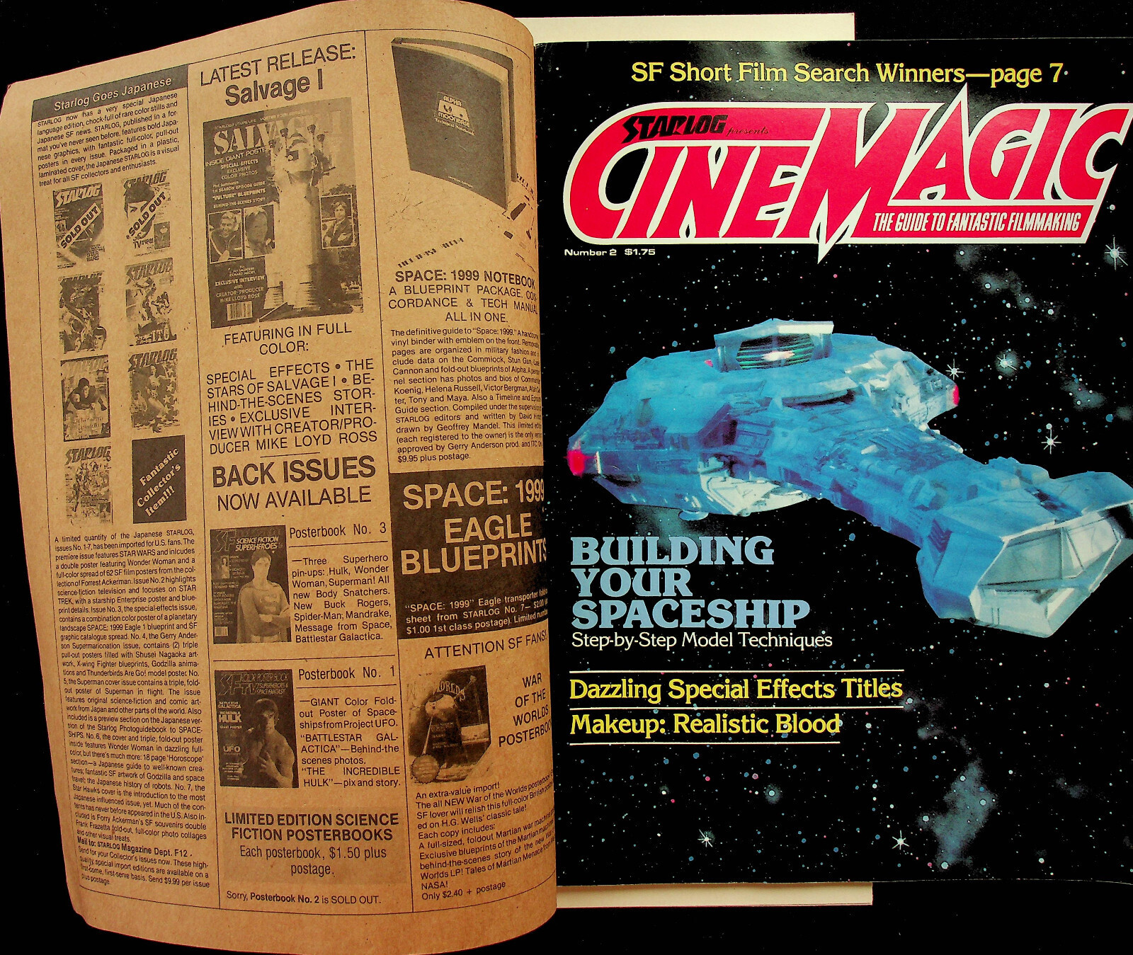 This is a magazine of Cinemagic Magazine No. 2 - published by O'Quinn Studios, Inc. All of the included items are present as shown in the scans.The pictures are of the actual copy being auctioned. The pages are complete and intact. I am the original owner (original subscription) and the magazine has been stored in a climate controlled environment in a smoke free home.If you would like more information, please feel free to ask. Please check out our other listings for more interesting items. I combine shipping whenever possible. All items are well packed and sent by USPS Ground Advantage Mail.