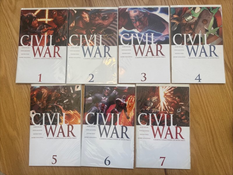 Civil War #1 2 3 4 5 6 7 Complete Marvel 2006 Full Run Set Millar McNiven 1-7 NM