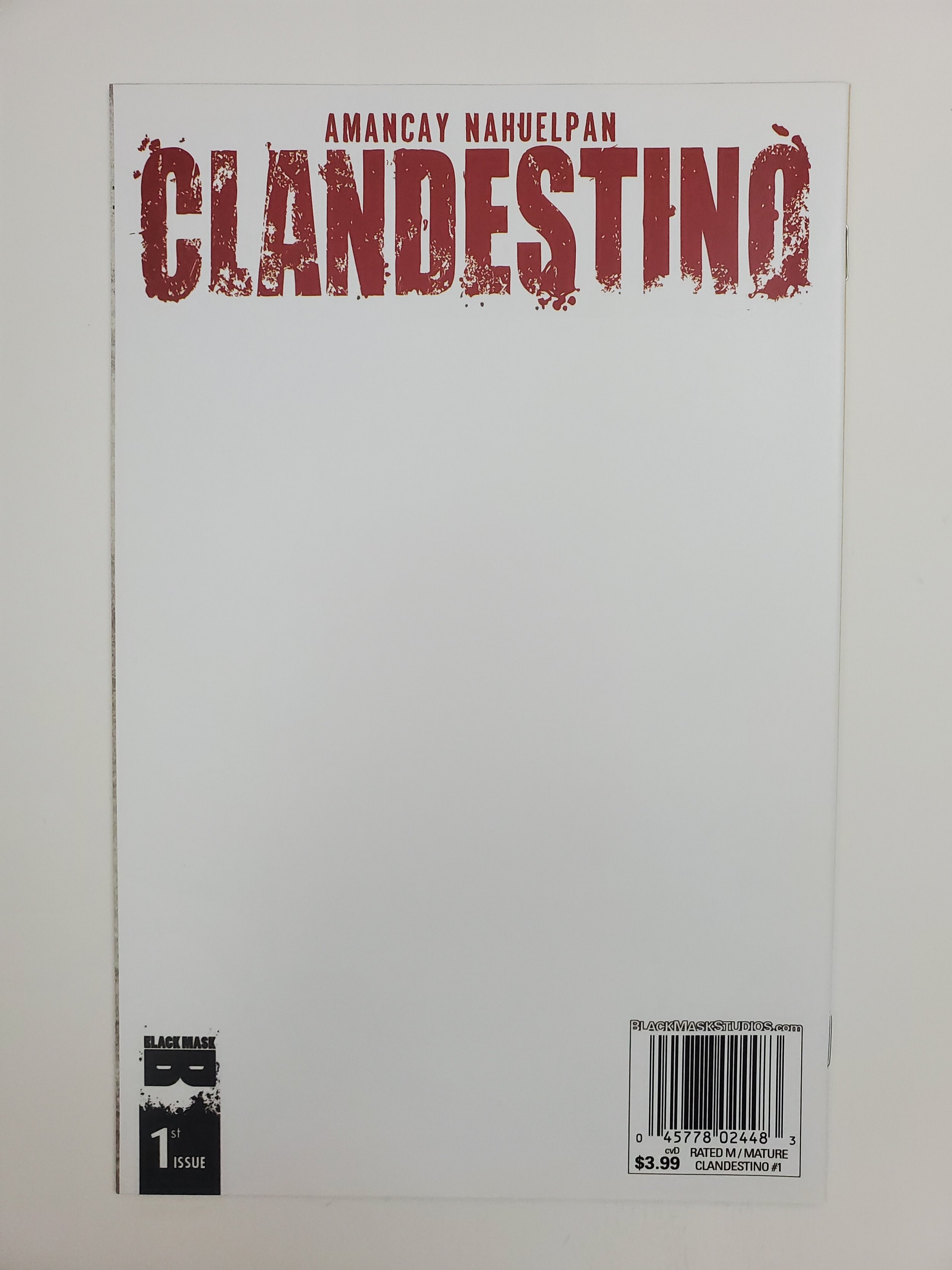Clandestino #1 Blank Rear Cover (2015)