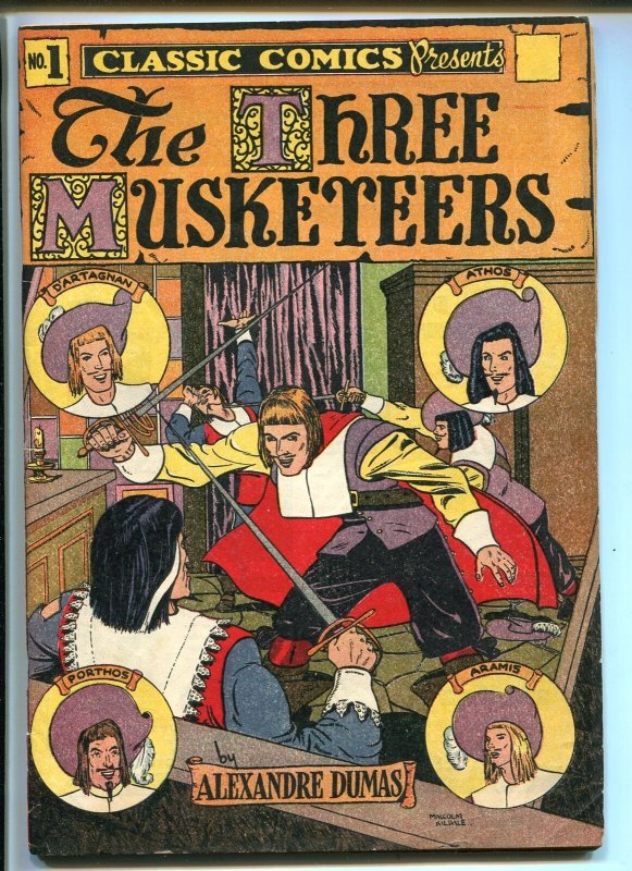 CLASSIC #1-GILBERTON HRN 28-THE THREE MUSKETEERS-vf minus -The Three Musketeers -HRN 28 -Has small tear at bottom of spine, this comic looks VF/NM except for the spine tear Grade: VF- SKU: CK53-069