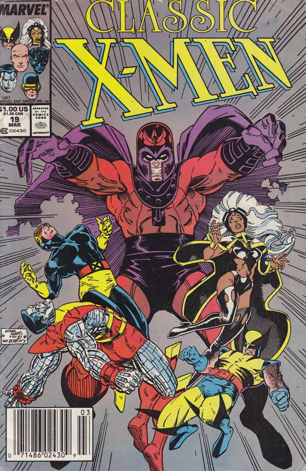 Item: Classic X-Men #19 (Newsstand) | Publisher: Marvel | Cover Date: March 1988 | Writer: Chris Claremont, John Byrne | Artist: John Byrne, Kieron Dwyer, John Bolton | Cover Artist: Arthur Adams | Appearances: Magneto (Erik Magnus), Cyclops (Scott Summers), Phoenix (Jean Grey), Storm (Ororo Munroe), Wolverine (James Howlett/Logan), Colossus (Peter Rasputin), Banshee (Sean Cassidy), Nightcrawler (Kurt Wagner) | Storylines: Showdown!; I, Magneto! | Notes: Newsstand edition; Reprints X-Men (1st Series) #113 | With Economy shipping, each additional comic ships for just 50 cents more to customers in the USA. This listing contains a stock photo and information from ComicBase™ and © Human Computing. The stock photo is for reference only. If you would like to see a photo of the actual item, please message us prior to purchasing.Seller Information
