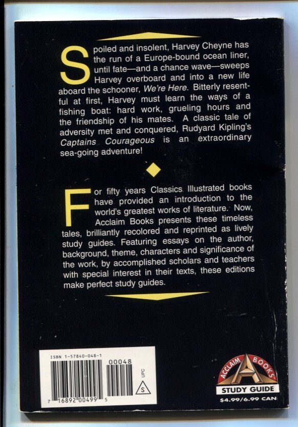 Grade: VGClassics Illustrated Rudyard Kipling Captain Courageous 1997 Acclaim Rudyard Kipling's Captains Courageous. Measures about 5.25" x 7.5". Creased copy. Grade: VG SKU: LI-31-312