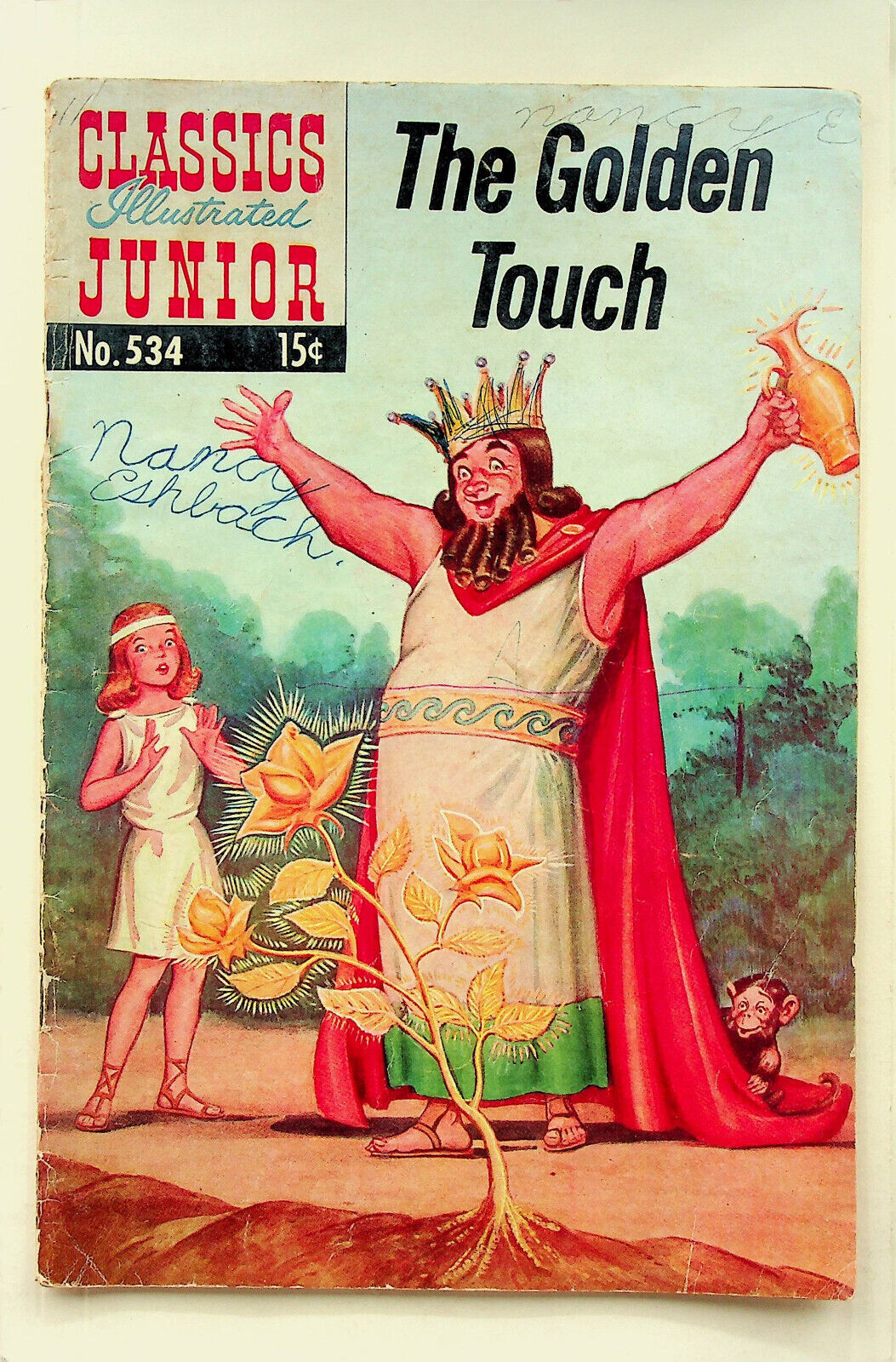 Grade: 1.8 Good-This is a comic of Classics Illustrated Junior: The Golden Touch No. 534 published by the Famous Authors, Ltd. in Jan., 1957. The grade is probably at least a Good- but I will leave that up to the buyer to determine from the scans.The pictures are of the actual copy being auctioned. The pages are complete and intact. The connect the dots on the inside cover is filled out. There is a name written on the front cover (see scans). The comic book has been stored bagged and boarded in a climate controlled environment in a smoke free home.If you would like more information, please feel free to ask. Please check out our other listings for more interesting items. I combine shipping whenever possible. All items are well packed and sent by USPS Ground Advantage Mail.New shipping prices: Buy any number of non-CGC graded comics and the First Class Package (or better) shipping all of them together is one flat fee of $4.99! Buy any CGC graded comic, pay the Priority Mail rate and all non-CGC graded comics bought and sent in the same package are shipped for no additional charges.