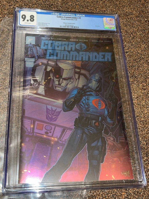 Grade: 9.8 Near Mint/MintUp for sale is a Cobra Commander 1 (2024). This is the Meyers foil variant cover. The book has been graded by CGC at 9.8. The case is in great condition with no issues. ________________________________________________________________________________________________________________________________SELLER TERMS AND CONDITIONS:Please take a look at my other items as I do combine shipping on all orders.If you purchase multiple items, please wait for an updated shipping invoice before paying.Items are from a smoke free environment.Payment is due within 3 days. Please contact me with any questions.