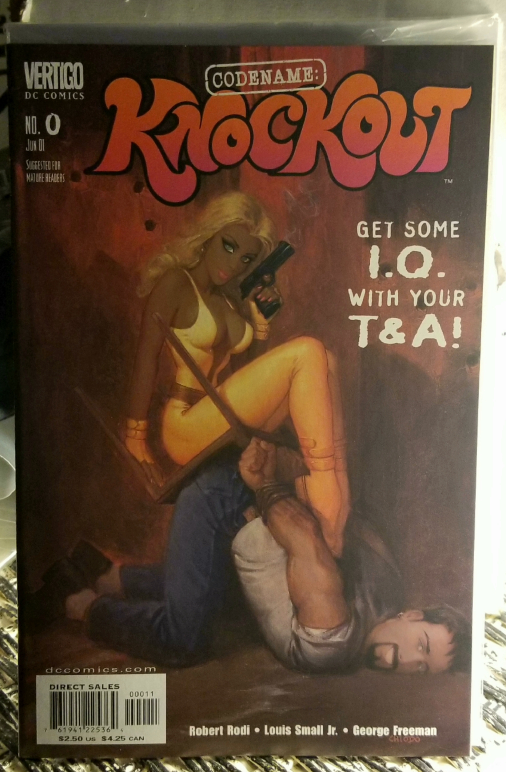 Codename: Knockout #0 by DC Comics copyright 2001. I have graded the comic book, using the Overstreet Grading Guide, at FINE/VERY FINE with the following defects: A couple of light stress marks along the spine. The corners are starting to round. There is some light yellowing of the pages.Seller Information