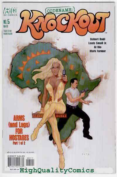 CODENAME ; KNOCKOUT #5, Femme Fatale, NM, Vertigo, Al Rio, 2001 Name of Comic(s)/Title?: CODENAME ; KNOCKOUT #5....{StockPhoto}.... Publisher: DC / Vertigo Comics..... Art by/Featuring/Stories?: Featuring a Codename Knockout comic...Artist(s) : Louis Small, Mark Farmer, Al Rio...Writer; Robert Rodi..Cover by : Noto...Story(s); "Arms (and legs) for Hostages..." ....Rated : PG13+ to Mature Reader....... Grade of item? : This issue is in NEAR MINT (unread, brand new) condition.... Created when? : 2001..... Front Cover description : Brand new, with very slight handling wear (if any).... Back Cover description : Brand new...... Page quality description : Brand new... Tape or writing?: No... How are staples?: Staples are secure.... Flat & supple : Yes.... Don't get caught napping...Will come bagged & boarded... 1st Printing!!... ...See more CODENAME, VERTIGO, & GOOD GIRL / FEMME FATALE items in our store. Be sure to check out all of our current on-going auctions! Lots of great product at affordable prices! Bookmark our listings with (control + D). Lots more coming in the next few weeks... Check out the scan(s). If you like this? Our store name is HighQualityComics...aka HQComics... We have been doing mail-order since 1988. We guarantee Absolute Satisfaction on All Orders! Shipping in a box. Combine auctions to save on postage. INTERNATIONAL CUSTOMERS : Email us for international shipping rates & acceptable ways to pay. INTERNATIONAL CUSTOMERS : Email us for acceptable ways to pay and shipping options, before you place an order. Thanks!Seller Information