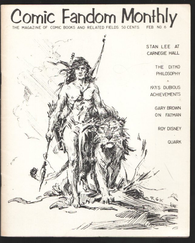 Grade: FNComic Fandom Monthly #6 2/1972-Ray Krenkel Tarzan cover art-Underground Comics-Stan Lee -Roy D. Disney death-FN -Ray Krenkel Tarzan cover art -Underground Comics -Stan Lee at Carnegie Hall -Roy D. Disney death -Fatman Comics Grade: FN SKU: LI-70-092