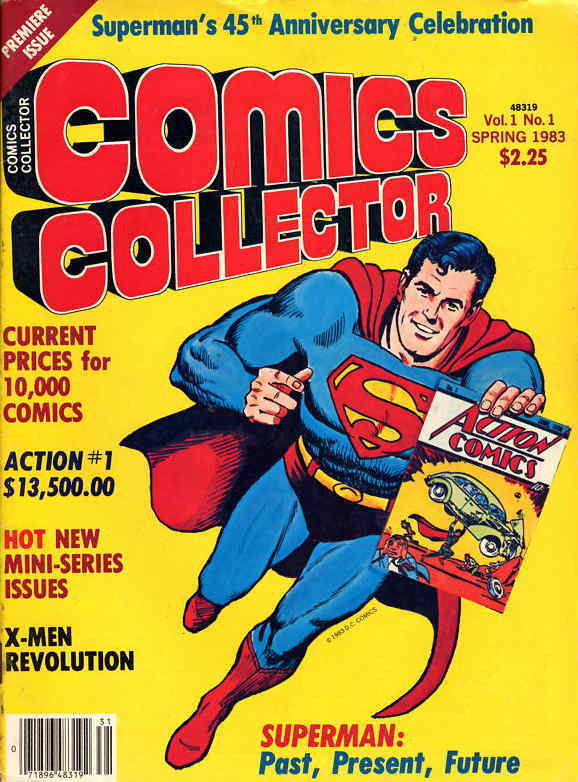Item: Comics Collector #1 | Publisher: Krause | Cover Date: 1983 | Writer: J.R. Main, Neil A. Hansen, Catherine Yronwode, Robert J. Sodaro, Derick G. Bishop, Calvin L. Clark, John Wilcox, Adam Neilson, Georgene Muller | Artist: Willie Blyberg, Stan Drake, Dick Giordano, Fred Hembeck, Lou Manna, Richard Maurizio, Kevin O’Neill, Curt Swan | Cover Artist: Curt Swan | Appearances: Superman | Storylines: Men Behind the Man of Steel (text); Greatest Comic Book Studio of All Time (text); Death of a Hero (text); Return of the Mighty Crusaders (text); Superman Evolution (text); X-Men Revolution (text); Kryptonian Kollectibles (text); Scene of Kelly Green (text); Let’s Go Collecting (text); Four For a $1 (text); Thunder Agents (text); Super Group Fact File (text) | Notes: Headline: Action Comics #1 sells for $13,500 | With Economy shipping, each additional comic ships for just 50 cents more to customers in the USA. This listing contains a stock photo and information from ComicBase™ and © Human Computing. The stock photo is for reference only. If you would like to see a photo of the actual item, please message us prior to purchasing.