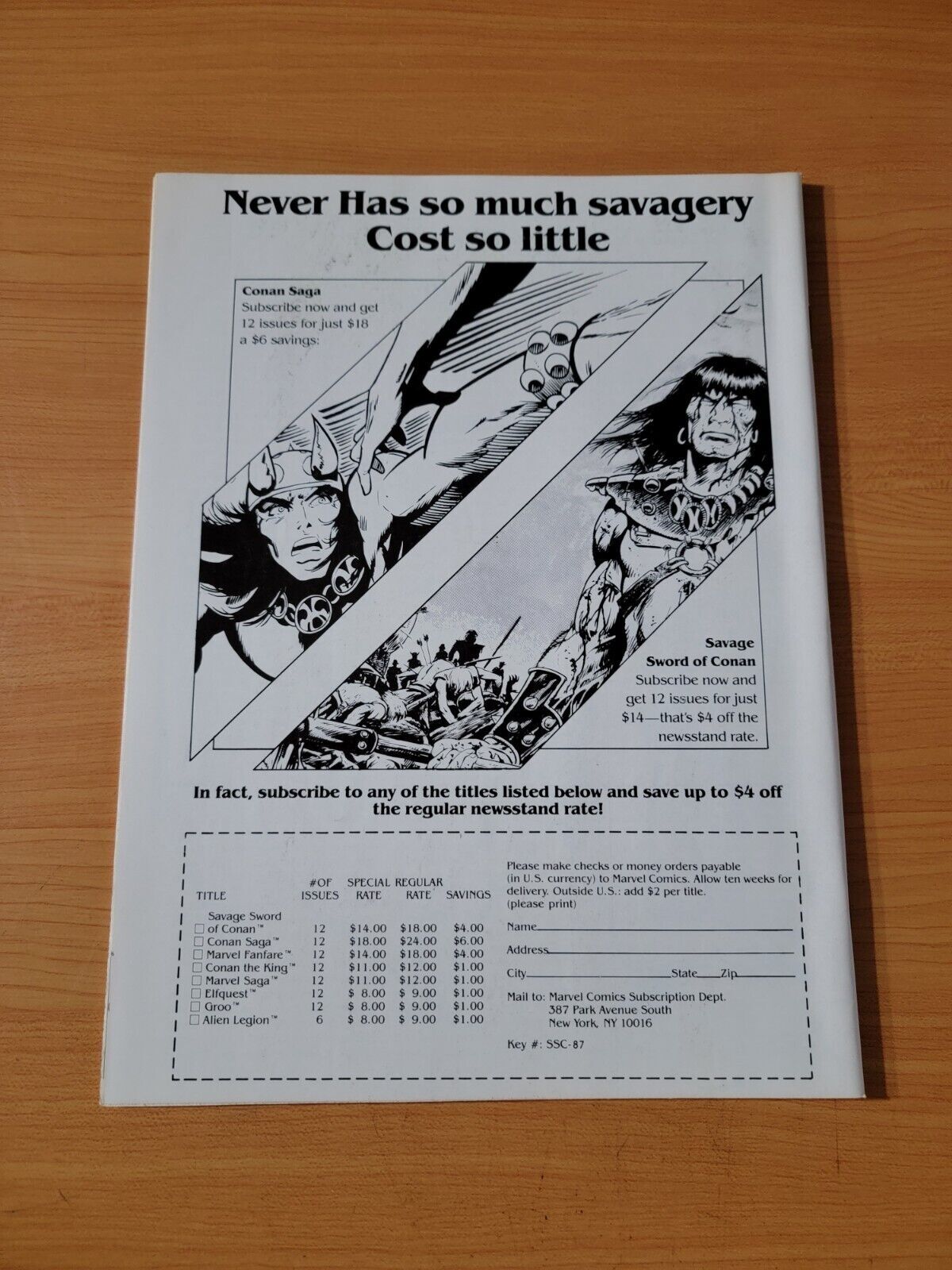 Item DescriptionConan Saga #1 Newsstand VariantPublisher: Marvel ComicsPublished: 1987Item Grade/ConditionGrade: NEAR MINTFor more information about this grade and other grades, please see our grading standards.~ WE TAKE HIGH DEFINITION PICTURES OF OUR COMICS ~ For more detail use the ZOOM Function and check them out yourself! ~Shipping Info:United States: Comic Book & Magazine Orders of all sizes, big and small ship for a flat Single Shipping ChargeInternational: We use Calculated Shipping! ~ This insures that you get the LOWEST POSSIBLE COST! ~ Please give us one business day to calculate large orders! The Calculator for Hip is pretty bad for international, contact us if you are looking to order multiple books so we can help you make it work on the back end! As a courtesy to our customers, we insure all orders over 50$ US ~ YOU DONT PAY EXTRA!Delivery TimeWe process and ship all orders within 1 business days. Once shipped, estimated U.S. transit time is 2-10 business days; international 14-21 business days.(Orders placed on Friday afternoon as well as weekends will be shipped the next business day as we do not ship on the weekends).PackingOmnomax Traders has mastered packing to ensure our orders of a "damage-free transport."Using the following methods, we have seen a nearly perfect 99% success rate for undamaged comics!Here is how our orders ship:All Orders :Bagged AND Boarded, ALWAYS NO EXCEPTIONS!Shipped in a Gemini Comic Mailer OR Tightly secured between 4x stiff pieces of corrugated cardboard (double Sandwiched)Sealed on all 4 sides with strong packing tape (Items doesn't even wiggle).:*Now this method is nearly perfect! however we have seen damage happen to items ( only once or twice a year ) ~ this is often due to bad handling by the postal service. Always remember to contact us if this happens! we are committed to quality service!*Offers History