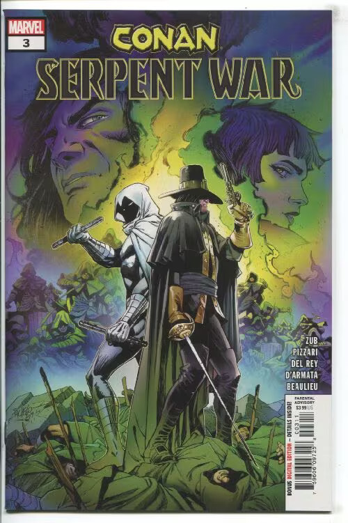 Grade: 9.2 Near Mint-Conan serpent war (2019 marvel) #3 cvr a carlos pacheco item number: cxwh-g17388 the last stand of conan, dark agnes, solomon kane & moon knight! � conan and dark agnes face off against the servants of set in stygia! � solomon kane and moon knight encounter a bizarre relic - but will it aid their quest, or doom their compatriots? � and what deadly secret lurks in the mind of james allison?